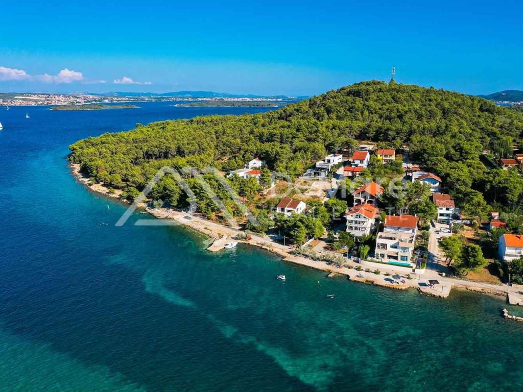 Parcela se nalazi na prekrasnoj, mirnoj lokaciji, s pogledom na more, okružena obiteljskim kućama, i svega je par koraka udaljena do mora i uređene plaže (80 m).