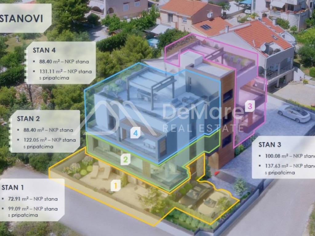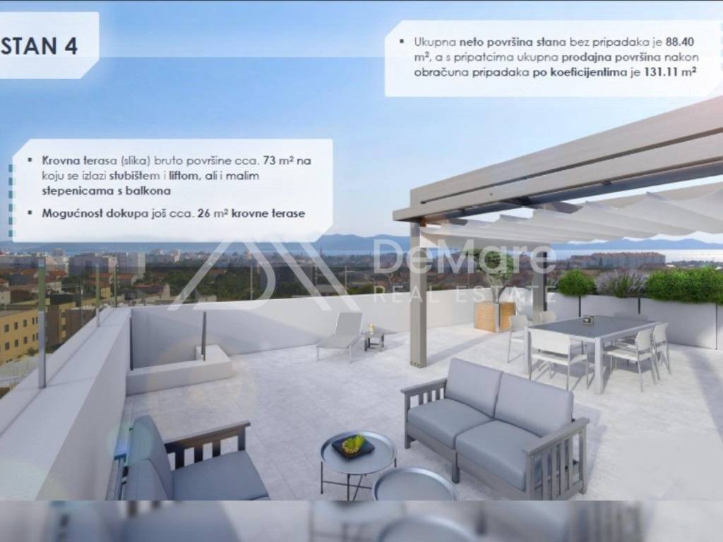 For sale is a unique, modern project, quality new buildings in a great location in Zadar, in the area of Melada, close to all amenities necessary for everyday life.