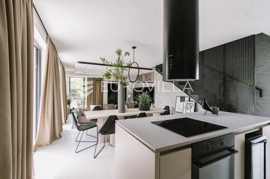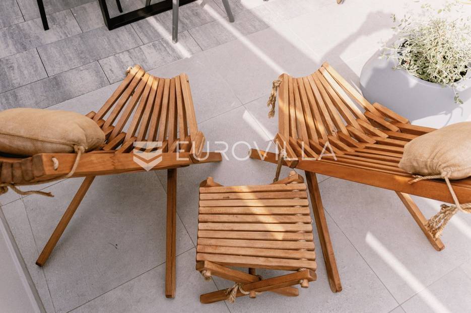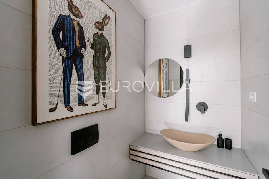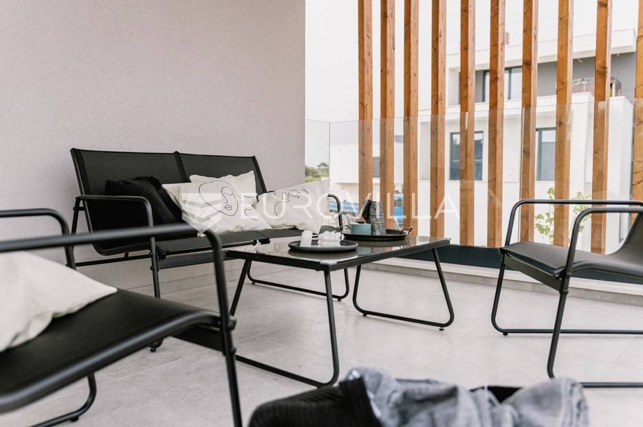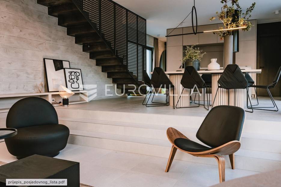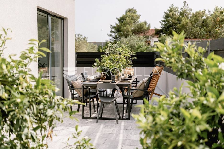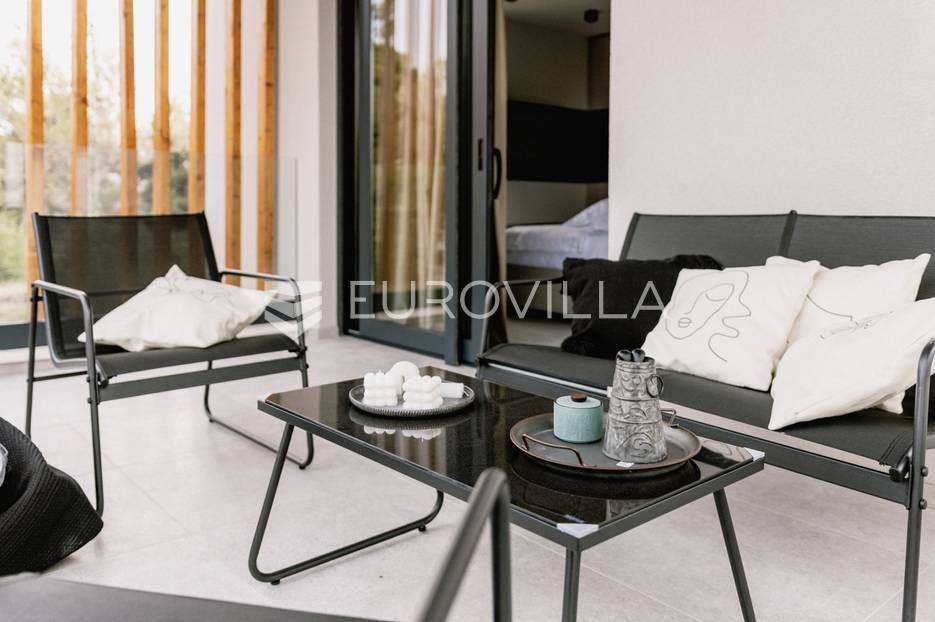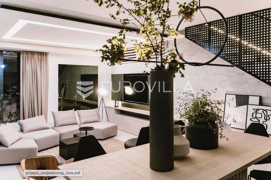 Novoizgrađena luksuzna vila smještena na mirnoj lokaciji u blizini Vodica, razvedena na dvije dizajnerski uređene etaže opremljene najkvalitetnijim materijalima i opremom.Na prizemnoj etaži smješteni su dnevni boravak, kuhinja i blagovaona s izlazom na terasu obogaćenu lounge zonom, jacuzzijem i bazenom od cca. 40m2 te sunčalištem, od jedne spavaće sobe s kupaonicom, gostinjskog toaleta i spremišta.Prva etaža je funkcionalno osmišljen spavaći prostor koji se sastoji od tri spavaće sobe od kojih dvije imaju vlastite kupaonice i izlaz na terasu/loggiu.Moderna arhitektura vile pruža maksimalnu udobnost i diskreciju, a obuhvaća atraktivni interijer i nadahnjujuće vanjske terase upotpunjene mediteranskim biljem i maslinama.Villa ima klimatizacijske jedinice u dnevnom dijelu, kao i u svim sobama te ugrađeno podno grijanje u kupaonicama tako da je idealna i za boravak tijekom cijele godine.Vanjski parking dostupan je ispred vile.Vila je potpuno namještena i spreman za useljenje.Dostupna je u periodu od 06.11.2025 do 01.04. 2026. godine. U cijenu najma nisu uključene režije.Za sve ostale informacije na upit.