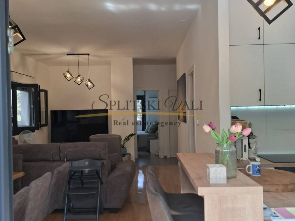 Ekskluzivno posredujemo u prodaji predivno uređenog dvosobnog stana od 60,66 m² s pripadajućim vrtovima ukupne površine 41,85 m², smješten u prizemlju moderne zgrade na mirnoj lokaciji u kvartu Kman.Stan se sastoji od prostranog dnevnog boravka s kuhinjom i blagovaonicom, dvije sobe, kupaonice, dodatnog wc-a i hodnika. Tlocrtna raspodjela omogućuje jednostavnu prenamjenu u trosoban stan, po potrebi budućih vlasnika.Posebnosti stana su visoki stropovi (3 m) koji prostoru daju dodatnu prozračnost i luksuzan osjećaj.Orijentacija istok-jug-zapad pruža obilje prirodne svjetlosti tijekom cijelog dana.Dva privatna vrta (ukupno 40 m²) bogato zasađena biljkama i voćkama – vaša zelena oaza u gradu. Potpuno namješten kvalitetnim, pažljivo biranim namještajem rađenim po mjeri.Klimatiziran s grijalicama u kupaonici. Pripadajuće garažno mjesto uključeno u cijenu, te namještaj.Zgrada je novije gradnje,održavana,smještena u mirnoj ulici s brzom povezanošću na sve gradske sadržaje – škole, vrtiće, trgovine, javni prijevoz i izlaz na magistralu.Ova nekretnina idealna je za one koji traže spoj urbanog života i privatnosti, bez potrebe za dodatnim ulaganjima.Za sve ostale informacije lijepo vas molimo kontaktirajte +385991600440 Maja.Razgledavanje ove nekretnine moguće je isključivo potpisivanjem Ugovora o posredovanju.