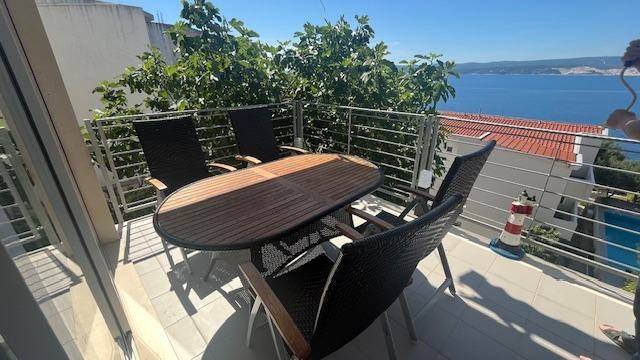 We are mediating the sale of an apartment house located near Omiš, in the village of Lokva Rogoznica. The house is just a 5-minute walk from the beach and is spread over three levels: ground floor + two upper floors.