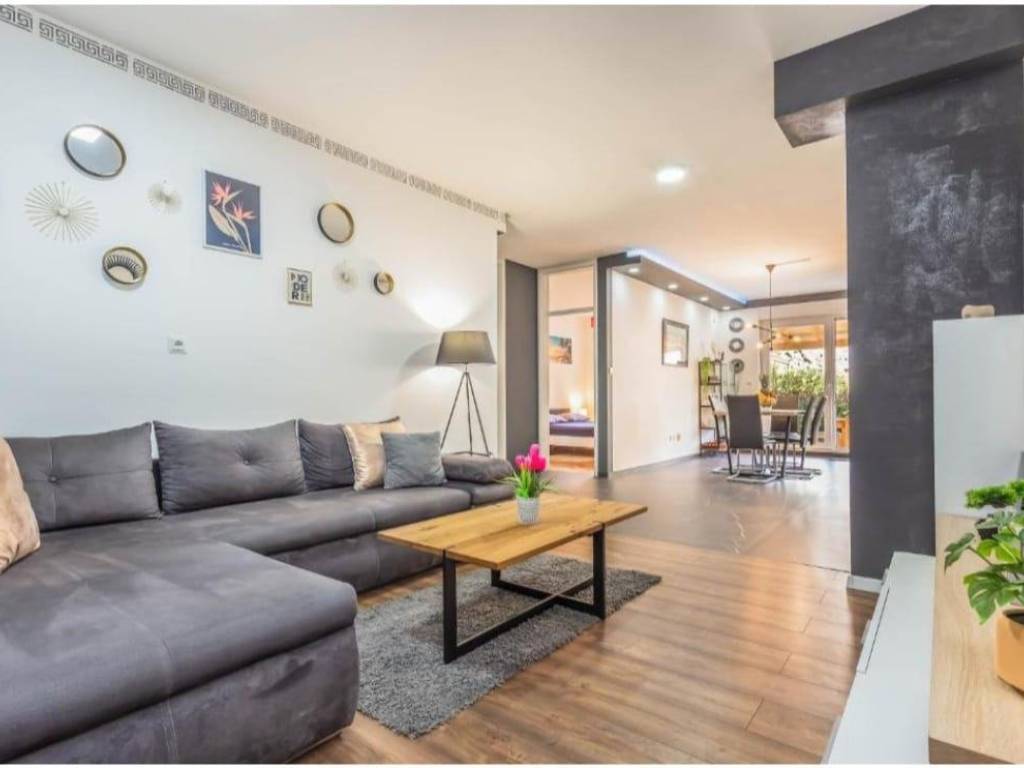 Posredujemo u prodaji komfornog dvosobnog stana u Omišu. Isti je smješten u prizemlju zgrade i sastoji se od dvije spavaće sobe, 2 kupatila, velikog dnevnog boravka, kuhinje i blagavaonice kao i vrta površine ca. 40 m2.Stan se prodaje potpuno opremljen namještajem i pogodan za obiteljsko življenje ,a i za turističko iznajmljivanje jer se nalazi u samoj blizini šetnice uz rijeku Cetinu, trgovačkog centra "Studenac", autobusne stanice, liječničkih ordinacija i sl. Stan je udaljen od centra grada svega nekoliko minuta hoda.