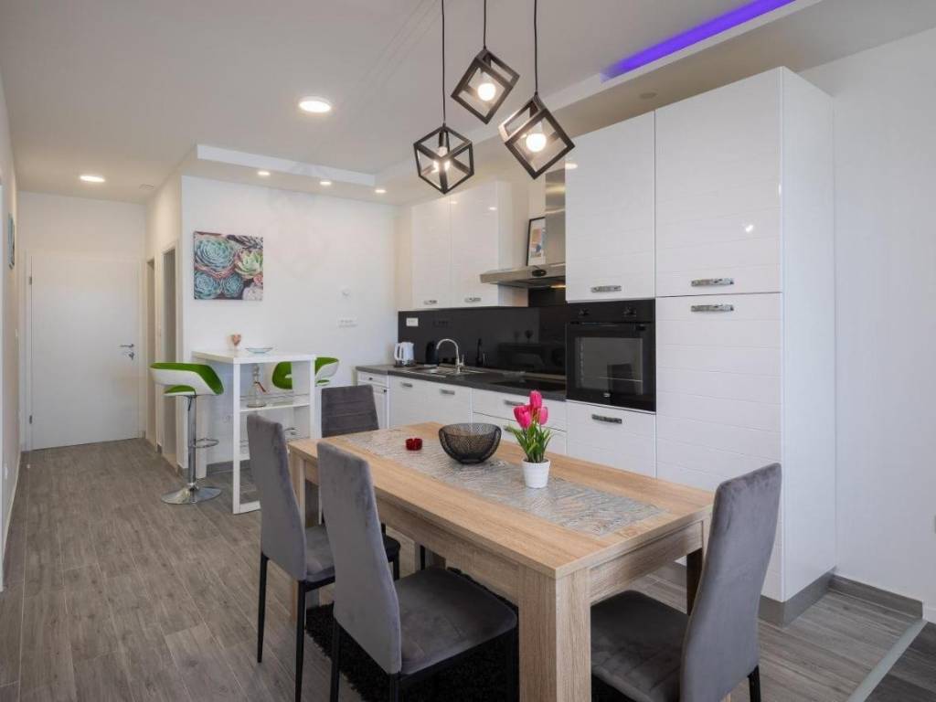 Stan je moderno opremljen kvalitetnom opremom te se kao takav i prodaje. Raspored stana je takav da se može iznajmljivati kao 2 apartmana i to jedan kao dvosobni apartman , a drugi kao studio apartman.U blizini stana se nalazi autobusna stanica,plaža, trgovina. Udaljenost od Omiša je ca 15 minuta vožnje, a do Splita 20 minuta vožnje.