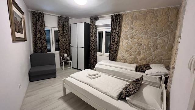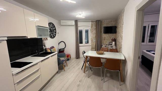 Posredujemo u prodaji manjeg dvosobnog stana smještenog u Varošu. Stan je smješten na 1. katu manje kamene kuće, orijentacije istok-zapad. Prije nekoliko godina je potpuno preuređen i trenutno se iznajmljuje u turističke svrhe.