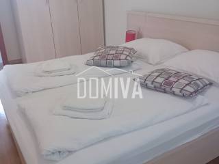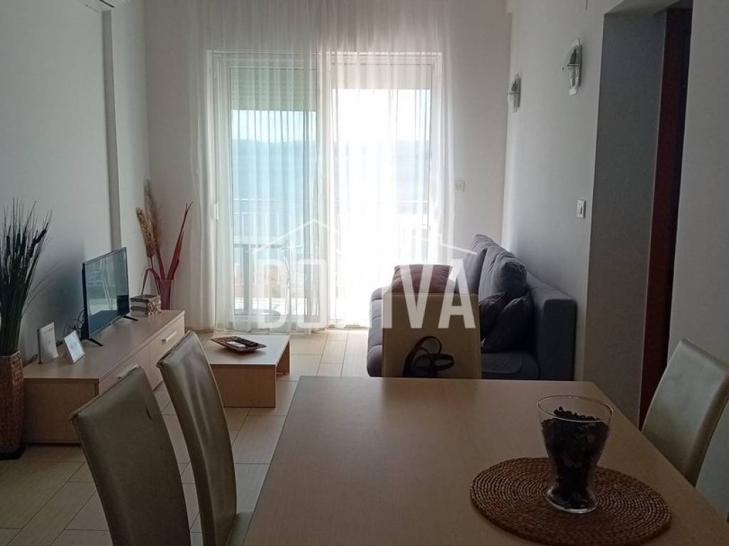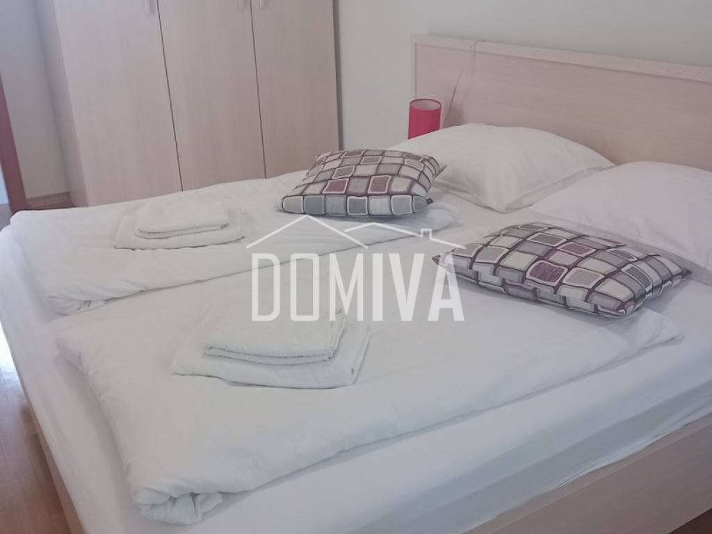 Prodaje se vrlo lijep, kompletno namješten stan koji se sastoji od ulaza kupaone, spavaće sobe, dnevnog boravka s izlazom na balkon, kuhinje, blagovaone, druge spavaće sobe i druge kupaone. Uredni papiri, etažirano, bez tereta, stanu pripada parkirno mjesto. Dobra lokacija, pogled na grad i more.