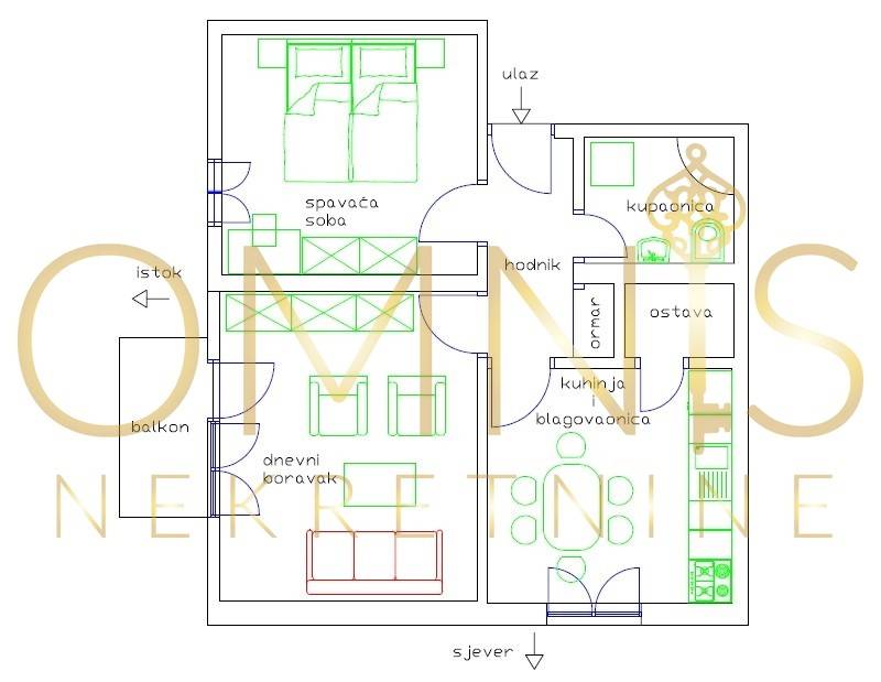 Stan se sastoji od spavaće sobe, dnevnog boravka, kuhinje s blagovaonicom, kupaonice i hodnika. Orijentacija na sjever i istok osigurava obilje prirodnog svjetla tijekom dana i ugodnu temperaturu u svim godišnjim dobima. Posebnu vrijednost daje balkon, savršen za opuštanje i uživanje u pogledu, te drvarnica koja pruža dodatni prostor za pohranu.