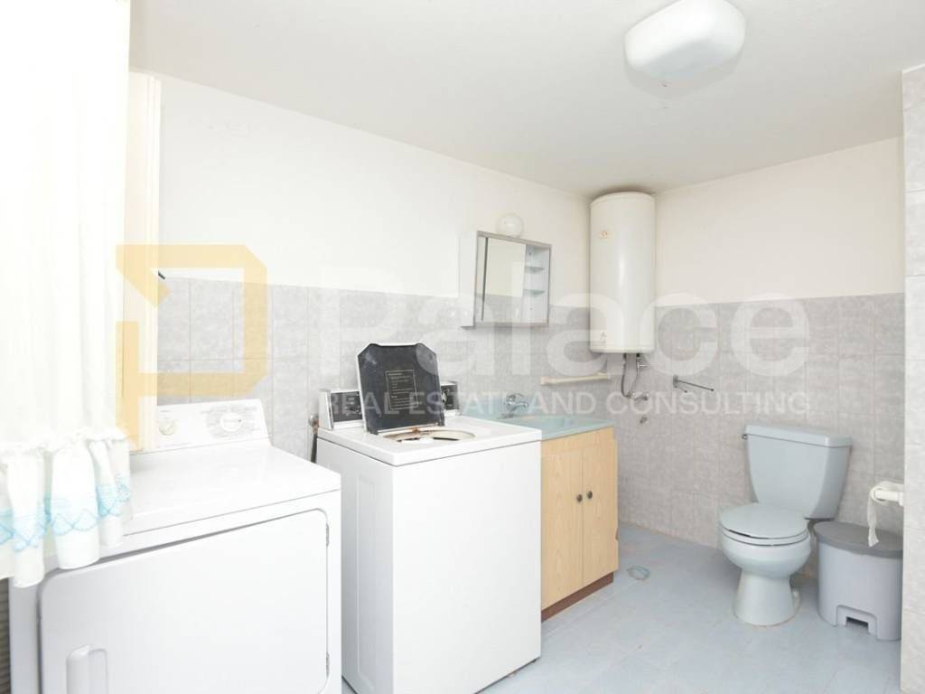 Ground floor apartment consists of two bedrooms, a bathroom, kitchen, dining room, living room, and storage room. New PVC windows have been installed, with access through the garage or a separate entrance via external closed stairs.