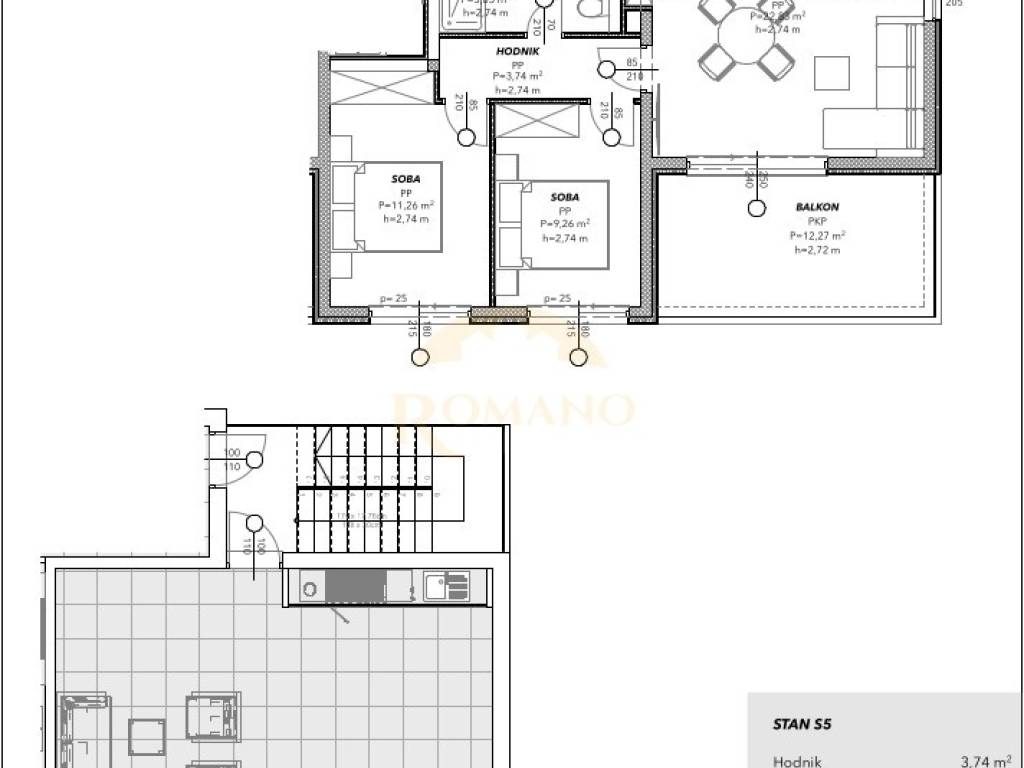 For sale is an apartment on the second floor with a total area of 64 m2 (52 m2 apartment and 12 m2 covered terrace + 60 m2 roof terrace).