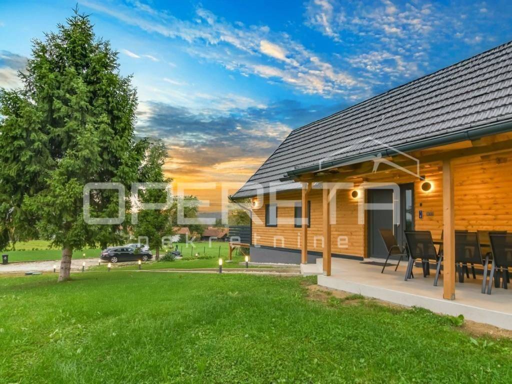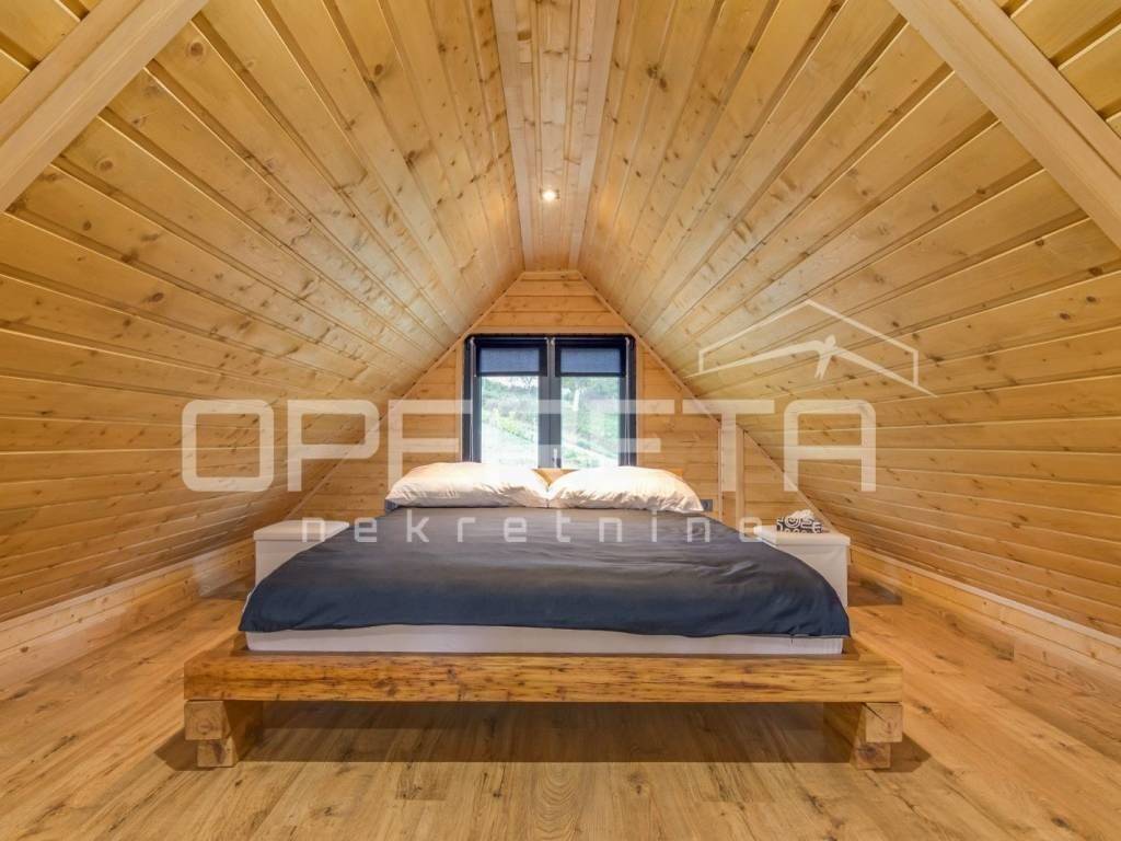Izuzetna drvena kuća kompletno i kvalitetno namještena s okućnicom od 3 747 m2, dvije terase, velikim dvorištem, otvorenim panoramskim pogledom i zelenilom.