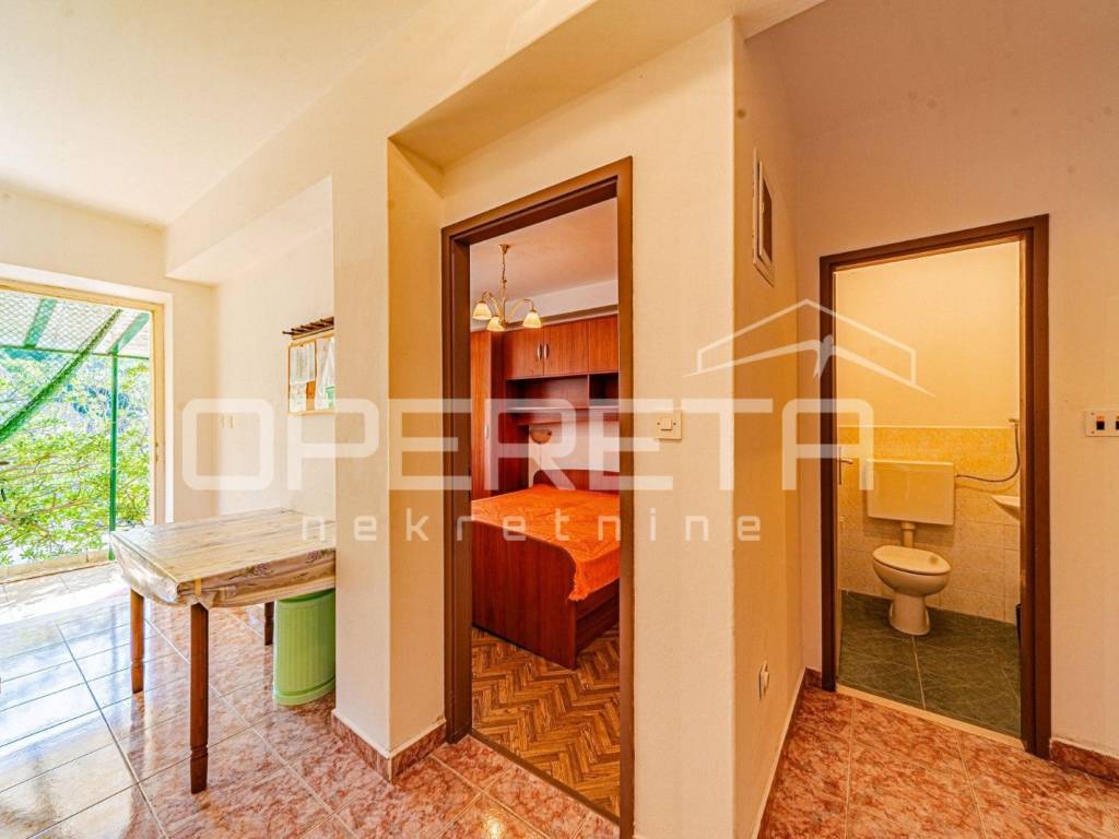 The property lies on a plot of approximately 300 m² and consists of two connected buildings. On the ground floor, there is a furnished apartment, while the second building includes two floors and an attic with a functional layout: kitchen, bathroom, hallway, two bedrooms, and a terrace with a sea view. Although the house requires full renovation, it offers significant potential to be transformed according to the future owner"s needs – whether as a family residence, holiday home, or a small tourist project.