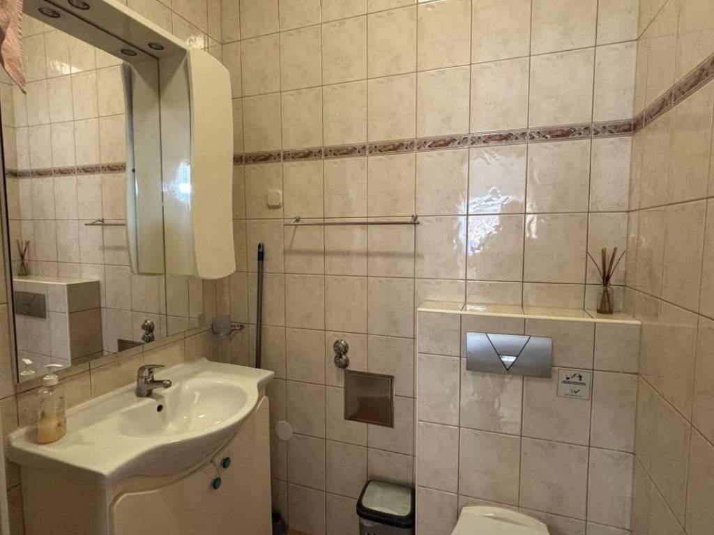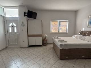A spacious studio apartment with sea view near Trogir, available for long term rent. The apartment is located on the ground floor of an apartment building in a quiet location. The orientation of the apartment is southwest, which ensures plenty of natural light throughout the day and a pleasant airiness of the space.   The apartment covers some 45 m² of living space, and it also has a terrace in front of the apartment of some 10 m² with a view of the sea and the surrounding area. The apartment is fully furnished and equipped and is rented as such. Heating and cooling are regulated by air conditioner, and the apartment also has an outdoor parking space, which is a great convenience. It has its own entrance and the right to use a laundry room.   In the immediate vicinity of the building there are all the necessary facilities for a pleasant and quality everyday life – shops, bakeries, cafes, restaurants and other services. The location of the facility ensures excellent connections to the center of Trogir and the surrounding area, while the position itself in a quiet neighborhood provides the ideal balance between urban life and privacy.