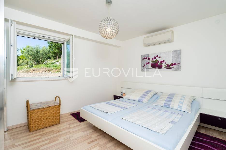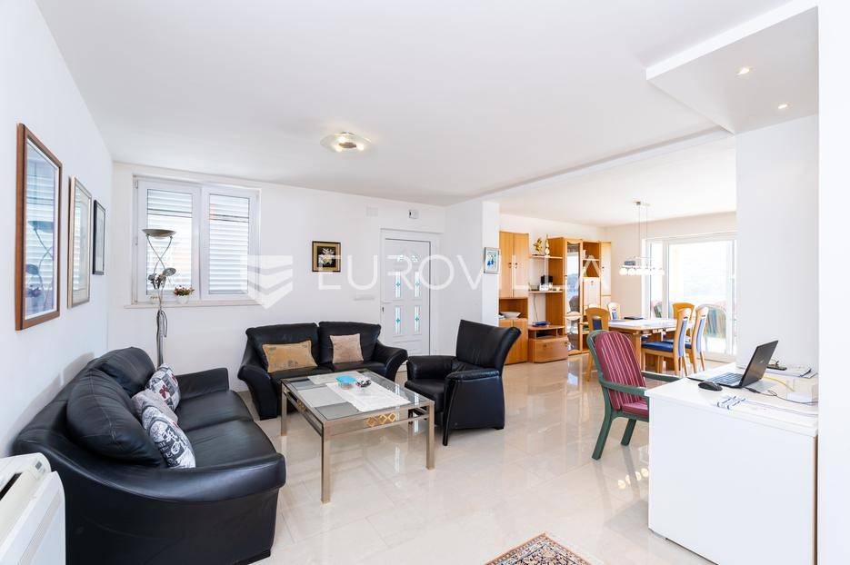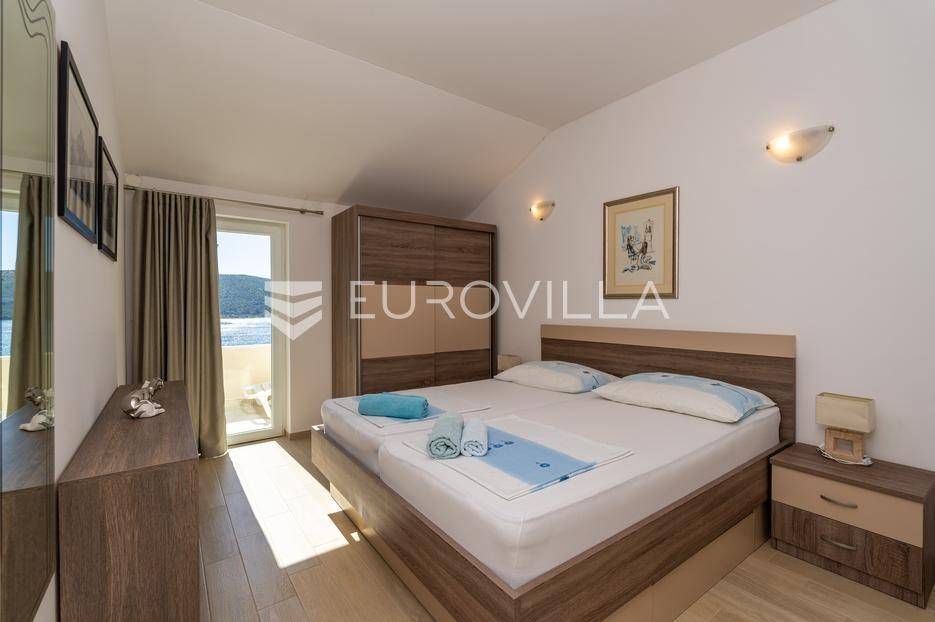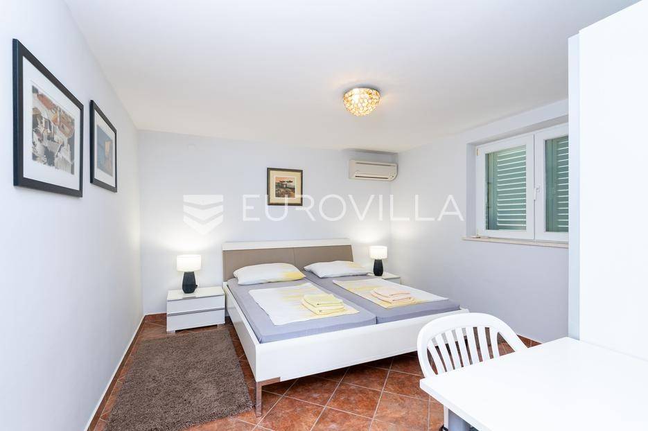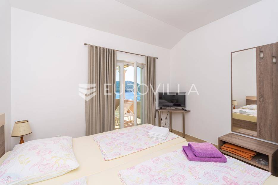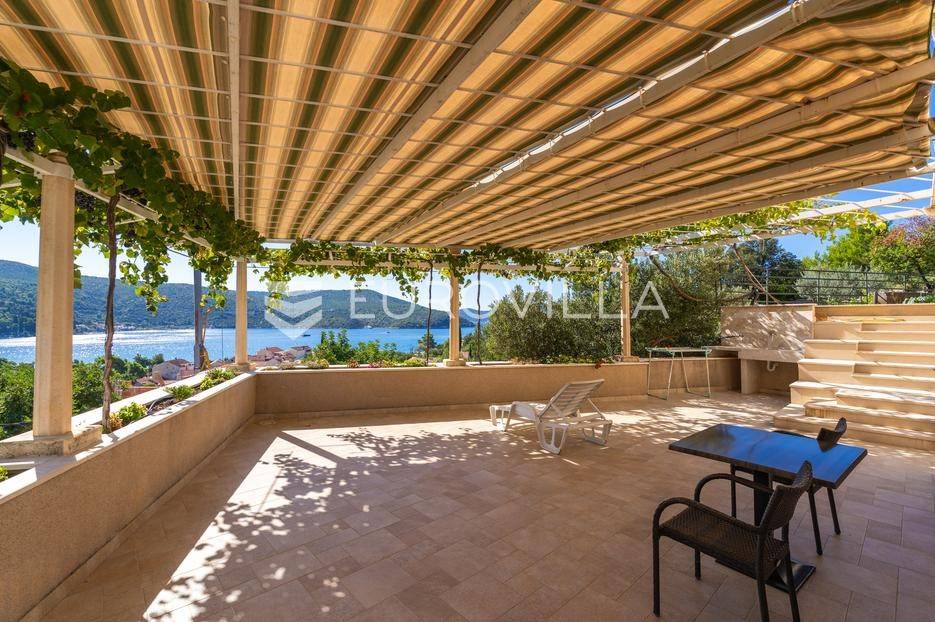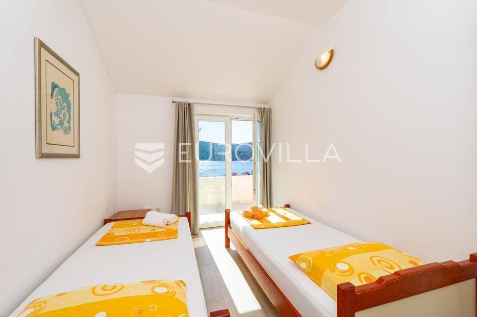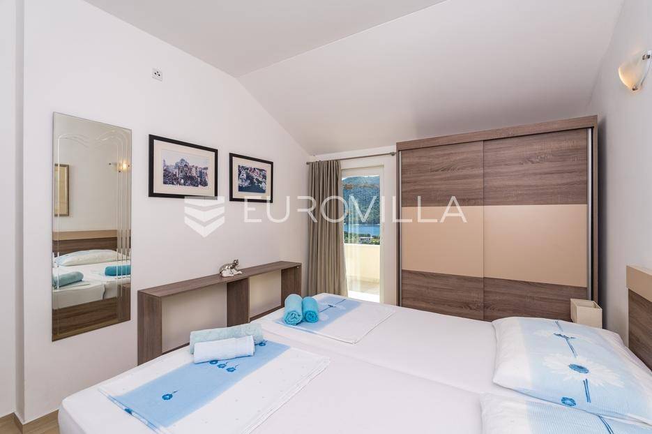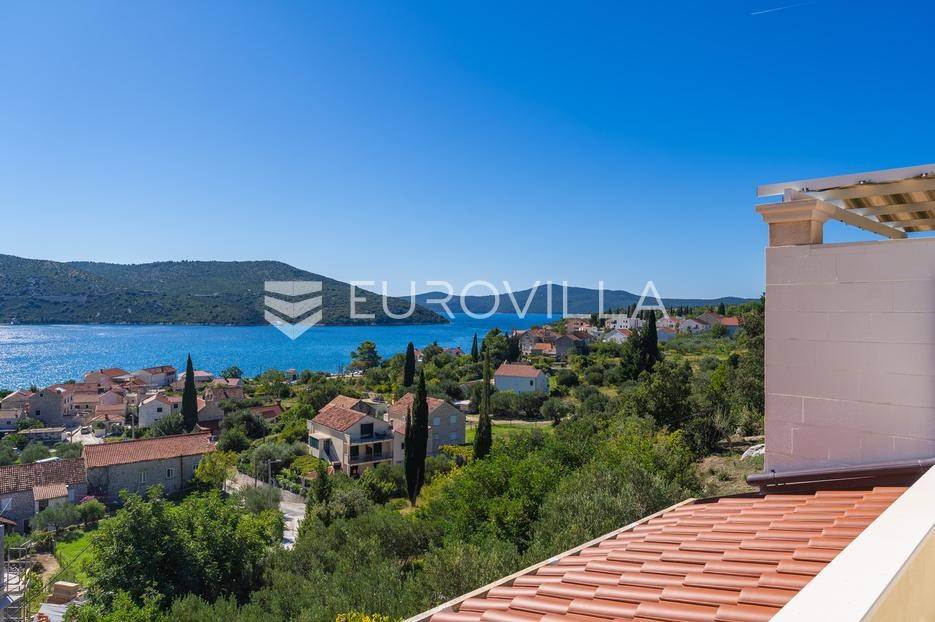 Slano, kuća s garažom bruto građevinske površine 350 m2 na uzvišenom položaju s prekrasnim pogledom na more i okolinu.Nekretnina se sastoji od tri etaže zajedno s garažom te prostorom za parking ispred kuće.U suterenu se nalazi sprema, dnevni boravak s kuhinjom, spavaća soba, kupaonica i sprema/praonica rublja zajedno s prostranom terasom. U prizemnom dijelu se nalazi apartman s predulazom, prostranim dnevnim boravkom s kuhinjom i blagovaonskim stolom, loggia površine 18,60 m2, toilet, kupaonica i dvije spavaće sobe. Na prvom katu se nalazi ulazni hodnik s ulazima u dva apartmana. Studio apartman se sastoji od predsoblja, kupaonice, spavaće sobe s izlazom na natkrivenu terasu površine 12,79 m2. Veći apartman se sastoji od dnevnog boravka s kuhinjom, loggie, dvije spavaće sobe od kojih obje imaju izlaz na terasu površine 8,74 m2.Uz samu nekretninu nalazi se zemljište površine 2087 m2 od kojih je 708 m2 u građevinskom području, dok je ostalo poljoprivredno zemljište.Za dodatne informacije, stojimo na raspolaganju.