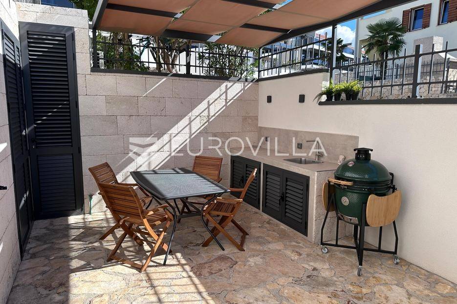 Ekskluzivna ponuda Euroville - Sutivan, otok Brač, 500 metara od mora.Stan se nalazi u prizemlju novogradnje iz 2021. godine i ima zatvorenu stambenu površinu od 60,58 m², dok ukupna obračunska površina iznosi NKP 76,25 m². Potpuno je moderno i kvalitetno opremljen i namješten, bez potrebe za dodatnim ulaganjima.Sastoji se od ulaznog hodnika, kuhinje s blagovaonicom, dnevnog boravka, dvije spavaće sobe, dvije kupaonice, te praktične ostave širine oko 80 cm i duljine oko 8 metara. Stan ima natkrivenu terasu od 5,6 m², dvije nenatkrivene terase ukupne površine gotovo 30 m² te pripadajući vrt od 55,24 m², što omogućuje ugodan boravak na otvorenom i potpunu privatnost.Nekretnini pripada i jedno vanjsko parkirno mjesto.Sutivan je prepoznat kao jedno od najšarmantnijih mjesta na otoku Braču - mirno, autentično i slikovito, s uređenim plažama, izvrsnim restoranima, kafićima i svim potrebnim sadržajima za ugodan boravak tijekom cijele godine.Od mora je udaljen svega 500 metara, u mirnom dijelu naselja, što ovu nekretninu čini izvrsnim izborom za odmor, ali i za cjelogodišnje stanovanje.Za više informacija i dogovor oko razgleda, slobodno nas kontaktirajte.