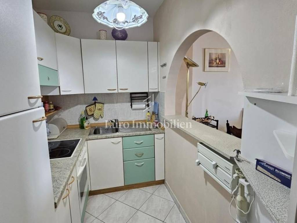 L’appartamento è composto da una camera da letto, cucina con zona pranzo e soggiorno, bagno e ripostiglio. Un ampio balcone offre una vista aperta sul mare. È dotato di riscaldamento centralizzato autonomo e aria condizionata. Inoltre, è compresa una cantina al piano terra dell’edificio (non conteggiata nei metri quadri catastali). Posti auto per i residenti sono disponibili nel cortile condominiale.