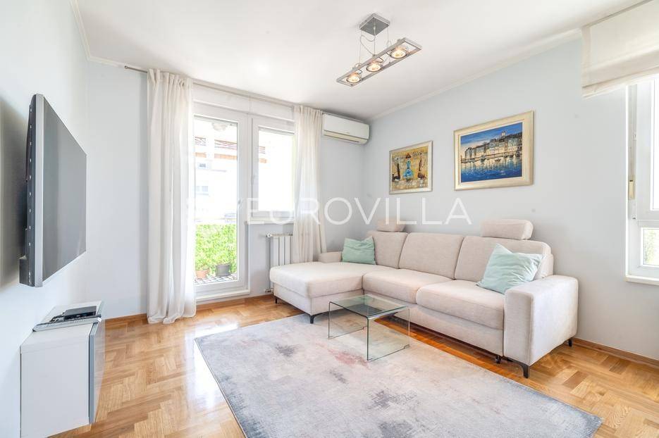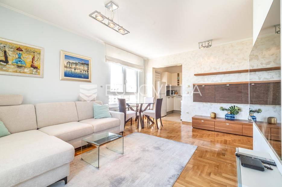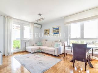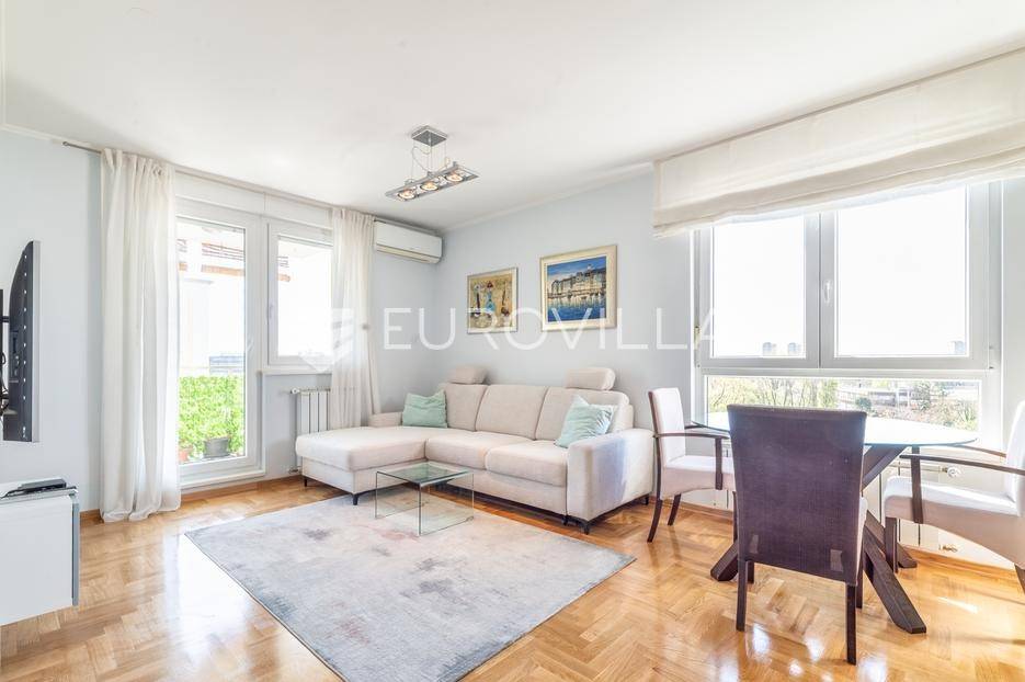 Zagreb, Trnje, Sigečica, prostran i lijepo uređen trosoban stan 70 m2 smješten na 7. katu zgrade novije gradnje s liftom.Stan se sastoji od dužeg ulaznog hodnika s puno mjesta za pohranu, open space prostora s puno prirodnog svijetla koji uključuje kuhinju(s ostavom), blagavaonicu i dnevni boravak s izlazom na loggiu, 2 spavaće sobe, kupaonice te gostinjskog wc. Stan je funkcionalan te opremljen svim potrebnim aparatima za kvalitetan život (perilica za suđe, sušilica, perilica za rublje, itd..)Grijanje etažno plinsko, klimatiziran. Orijentacija istok jug, protuprovalna vrata.Stanu pripada i vanjsko parkirno mjesto te postoji mogućnost najma 2 garažna mjesta uz dodatnu naplatu.Nalazi se na odličnoj lokaciji u mirnoj i uvučenoj ulici, a na par minuta hoda do javnog prijevoza i brzih prometnica, što pruža lakšu i brzu povezanost sa svim dijelovima grada, te je u blizini svega potrebnog za kvalitetan život u gradu. Neposredna blizina Zagreb Towera, Matrixa, Green Golda, trgovina, kafića, ljekarni, škola, parkova vrtića, sporta, mnogih uslužnih djelatnosti itd.Za sve ostale informacije stojimo na raspolaganju.