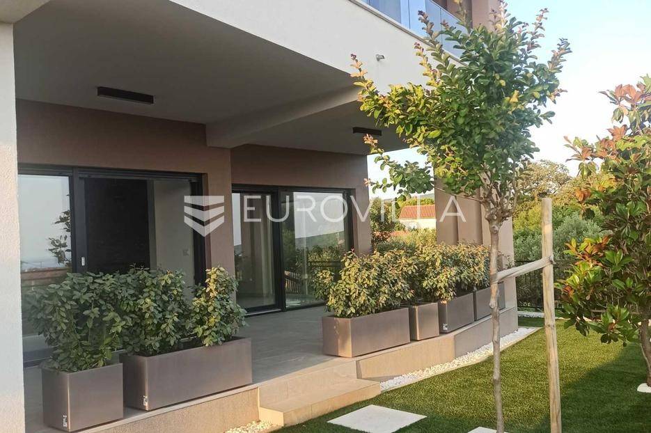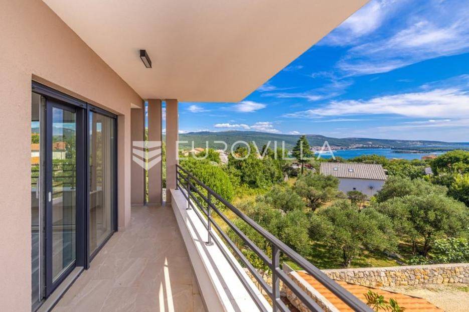 Moderna vila novije gradnje na otoku Krku, površine 200 m², smještena na parceli od 614 m². Ova nekretnina nudi vrhunski komfor, pažljivo biran dizajn i kvalitetne materijale, a s prostranih terasa pruža se očaravajući pogled na more.U prizemlju kuće nalazi se prostrani dnevni prostor koncipiran kao open space s elegantnim kaminom, kuhinjom i blagovaonicom te direktnim izlazom na terasu. Tu su i wellness zona sa saunom i kupaonicom, dodatni toalet za goste, hodnik te korisna ostava.Na katu su smještene tri prostrane spavaće sobe, svaka s vlastitom kupaonicom i izlazom na balkon ili terasu, što pruža dodatnu privatnost i udobnost. Također, na katu se nalazi i odvojena praonica rublja. Sve kupaonice opremljene su podnim grijanjem, što jamči ugodnu temperaturu tijekom cijele godine.Okućnica je pažljivo uređena i ograđena, s puno zelenih površina i automatskim navodnjavanjem. Ispred kuće nalazi se grijani bazen sa slanom vodom, sustavom protustrujnog plivanja i automatskim doziranjem kemikalija. Dodatni luksuz pruža jacuzzi za pet osoba.Kuća je opremljena suvremenim tehnologijama - solarni paneli na krovu, punionica za električna vozila, video nadzor, alarmni sustav, ALU električne rolete i PVC stolarija. Moderan izgled zaokružuje elegantan ravan krov, usklađen s arhitektonskim stilom vile.Ova nekretnina predstavlja idealan spoj luksuza, privatnosti i praktične lokacije te je savršena kako za miran obiteljski odmor, tako i kao investicija za turistički najam.Za više informacija ili razgled nekretnine slobodno se javite.