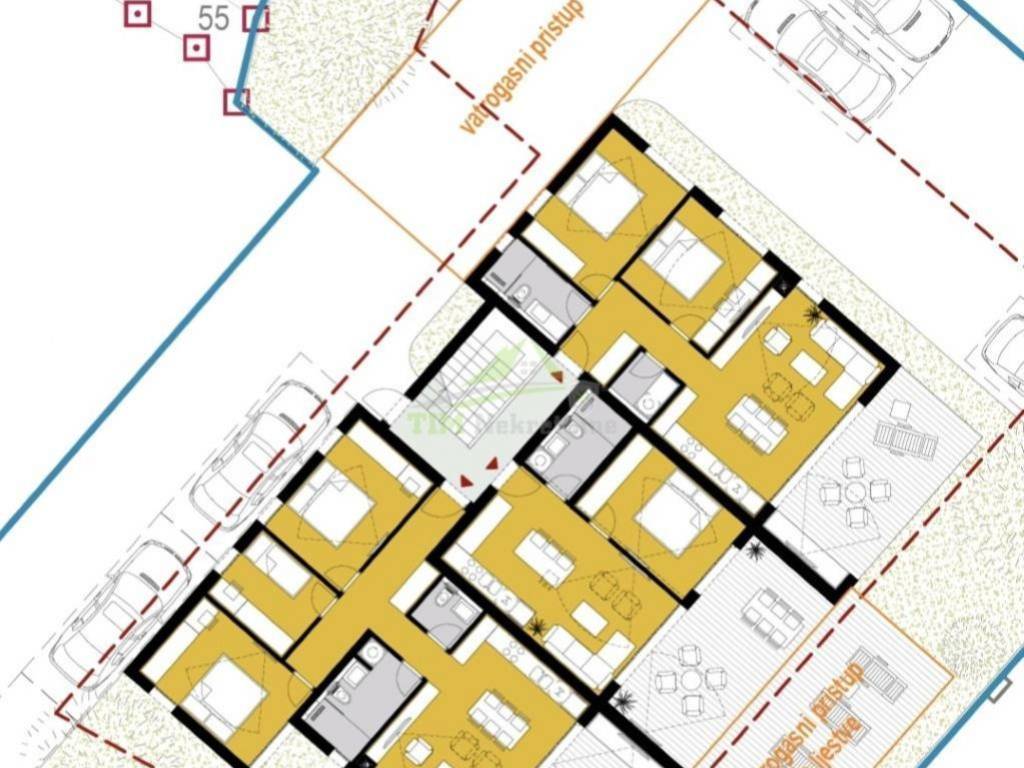 RASPORED STANA:- hodnik- kuhinja sa blagovaonicom i dnevnim boravkom- spavaća soba I- spavaća soba II- spavaća soba III- kupaonica I - kupaonica II- terasa
