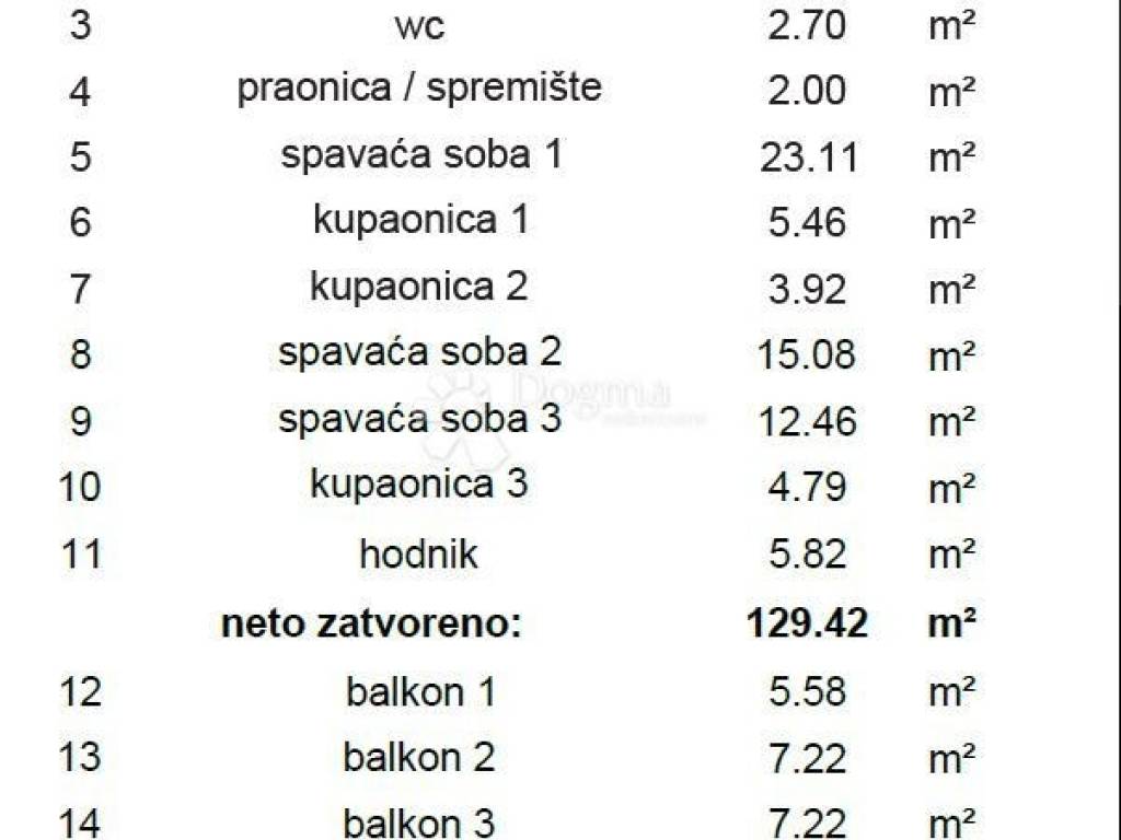 Exclusive Penthouse with Jacuzzi, Sea View and Two Garage Parking Spaces – Third Floor Discover this exceptional penthouse located on the third floor of a modern residential building, occupying half of the entire floor. With a total net area of 192.62 m² (129.42 m² interior + 63.20 m² exterior), this apartment offers a perfect combination of space, luxury, and Mediterranean elegance. The interior includes: entrance hall – 3.36 m² living room, kitchen and dining area – 50.72 m² WC – 2.70 m² laundry / storage – 2.00 m² bedroom 1 – 23.11 m² bathroom 1 – 5.46 m² bathroom 2 – 3.92 m² bedroom 2 – 15.08 m² bedroom 3 – 12.46 m² bathroom 3 – 4.79 m² hallway – 5.82 m² Outdoor area: balcony 1: 5.58 m² balcony 2: 7.22 m² balcony 3: 7.22 m² covered terrace: 21.10 m² uncovered terrace: 22.09 m² Net exterior: 63.20 m² Total net: 192.62 m² Equipped with air conditioning in every living space, while the living room features an intelligent AC system that detects the presence of occupants and adjusts airflow so that hot or cold air never blows directly on them. Premium features include: Touch-controlled glass wall in master bathroom Jacuzzi on the terrace with panoramic sea views Two garage spaces included The building features: elevator (rare for Čiovo, especially so close to the sea) secure, fireproof, smoke-proof doors underfloor heating in living rooms and bathrooms triple-glazed windows, electric blinds, mosquito nets optical fiber internet Location benefits: less than 150 m from the sea and beach quiet, prestigious environment with greenery uninterrupted panoramic sea views proximity to restaurants, cafes, shops, marina, and sports facilities excellent transport connections: Trogir 4 km, Split Airport 5 km, Split 28 km This is truly a unique and exclusive property, designed to maximize comfort, functionality, and investment potential. Every detail has been carefully planned, making it one of the rarest opportunities on Čiovo and the surrounding coastal area. ID CODE: ST4307 Nino Matas Asistent u posredovanju Mob: 097/681-3903 Tel: +385 21 293 201 E-mail: nino.matas@dogma-nekretnine.com www.dogma-dalmacija.com