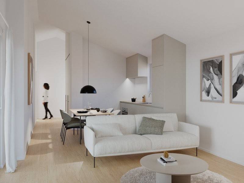 For sale: a modern penthouse located on the second floor of a new urban villa! The apartment consists of a spacious living room with kitchen and dining area, one bedroom, one bathroom, and a terrace. The price includes one parking space in the building's courtyard. Each unit will feature electric underfloor heating in the bathroom, and inverter air-conditioning units in the living room and master bedroom. The apartment is very sunny and designed for maximum functionality and comfort.
