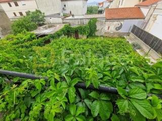 The house consists of a ground floor and first floor. On the ground floor, there is an entrance hall, renovated bathroom, kitchen with dining area, bedroom, storage room, and a large terrace. Inner stairs lead to the first floor where there are two bedrooms and an additional room that can easily be converted into a bathroom, as water pipes and verticals have already been installed. Both bedrooms have access to a balcony that runs the entire length of the house.