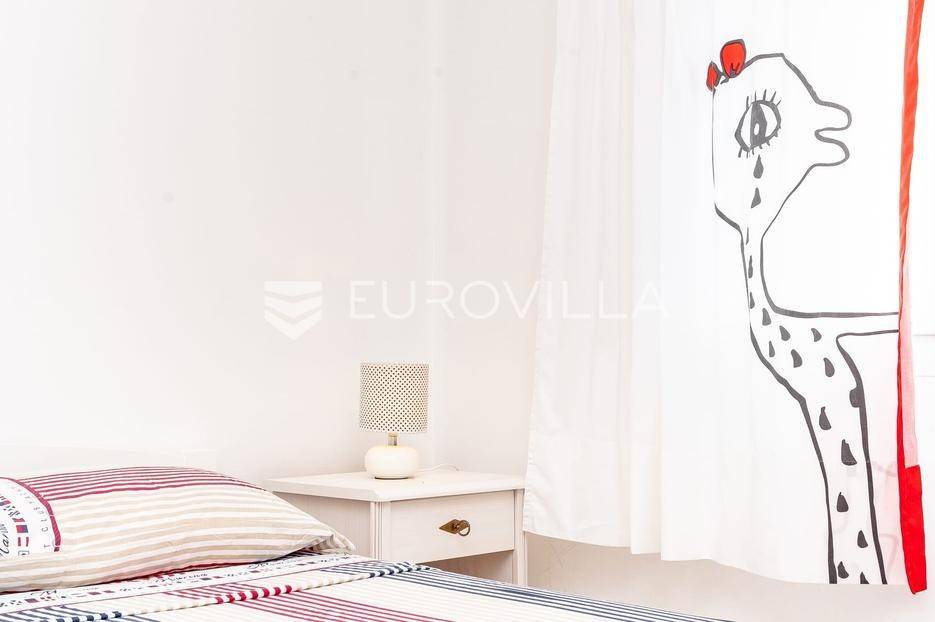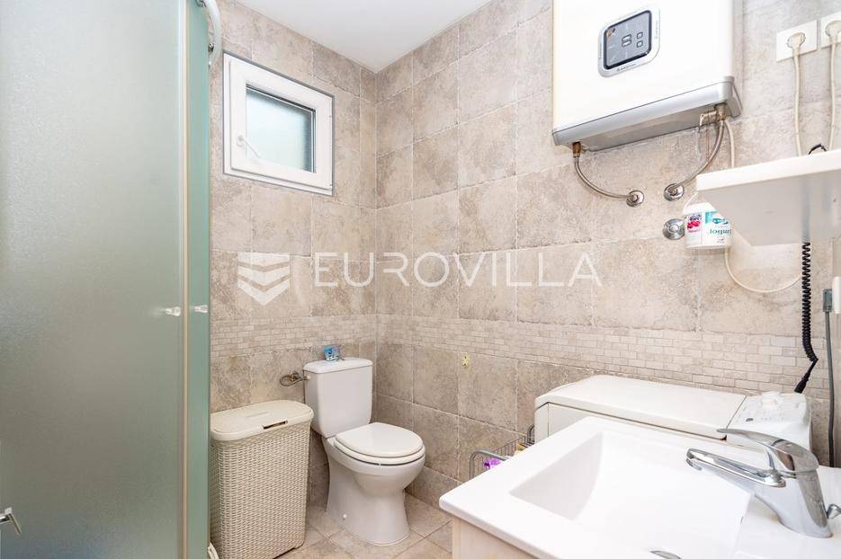 Nekretnina se sastoji od suterena u kojem se nalaze gustirna i spremište, te kata na kojem je smješten trosoban stan s prekrasnom, vrlo prostranom, djelomično natkrivenom terasom i kaminom.