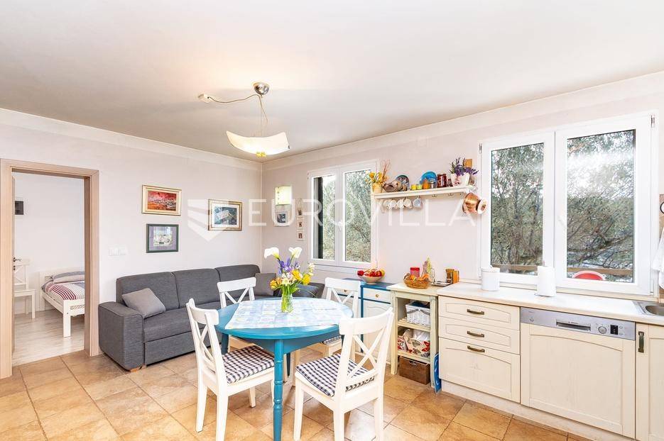 Nalazi se uz manju susjednu kuću, a pristup vozilom nije moguć direktno do kuće nego se dolazi pješice stepenicama 70 m od asfaltne ceste koja prolazi i kroz cijelu uvalu. Vlasnik ima pravo korištenja dva mula ispod kuće. Okućnica je kultivirana i lijepo uređena.Za sve ostale informacije stojimo na raspolaganju.