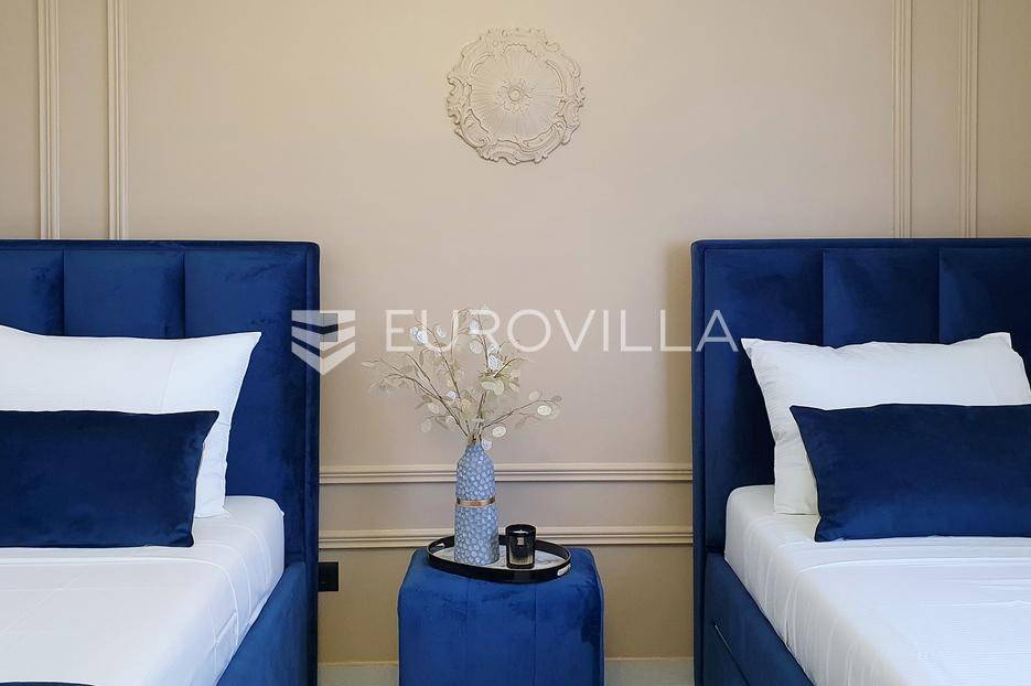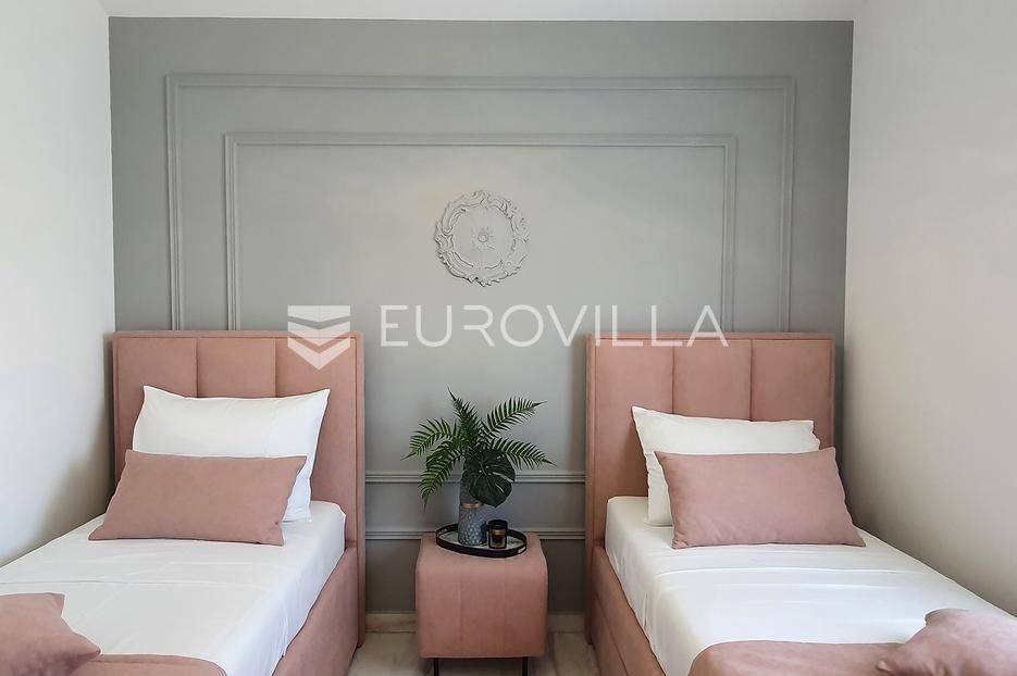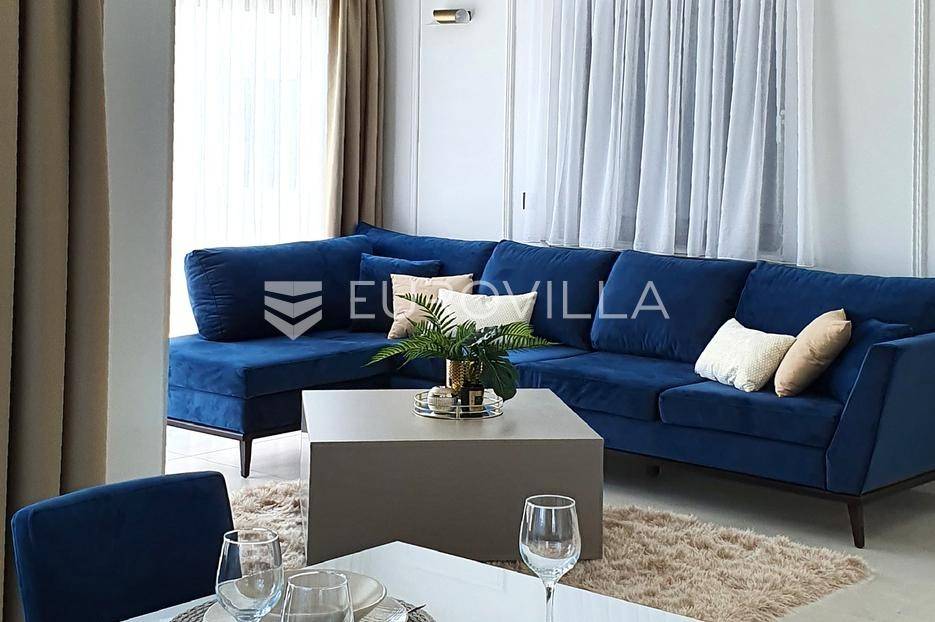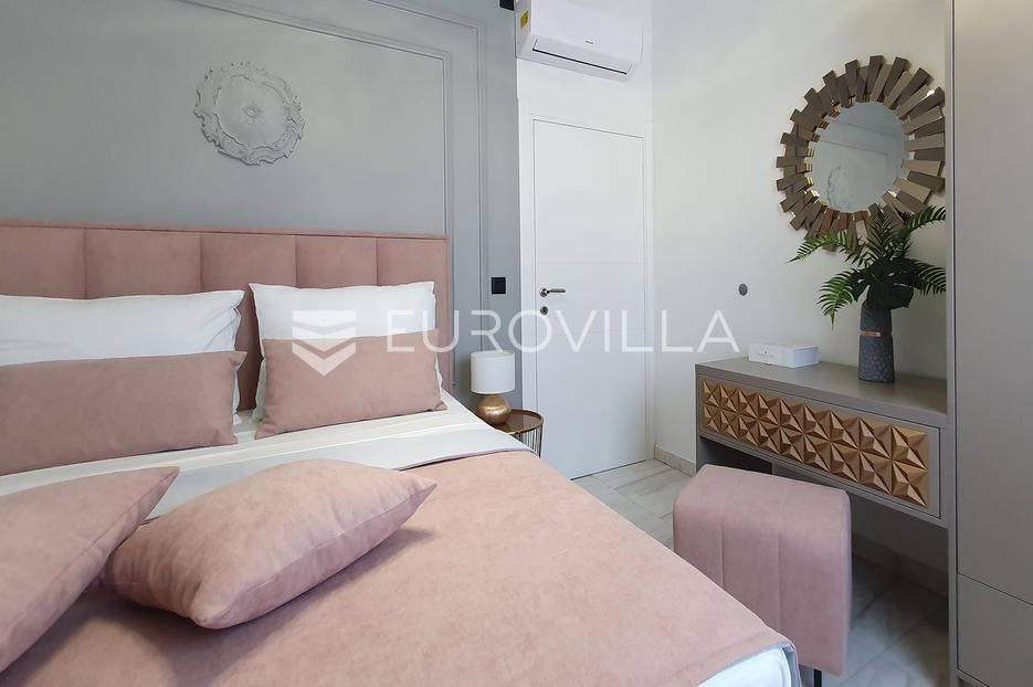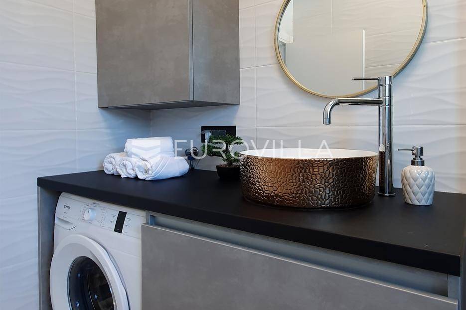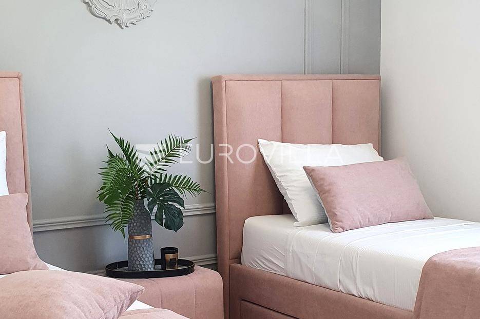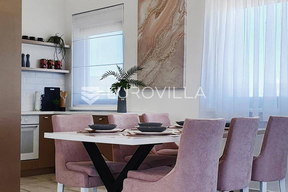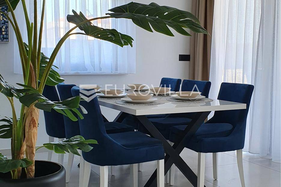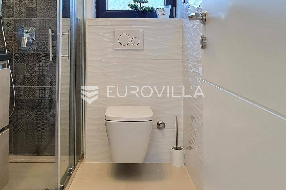 Šibenik, Podsolarsko, prekrasna kuća s bazenom i pogledom na more površine 178,96 m². Iznajmljuje se na duži period, uključujući i ljeto.Izgrađena na 2 etaže na parceli od 347 m². Sastoji se od dva stana od kojih svaki ima prostrani dnevni boravak s kuhinjom i blagovaonicom, dvije spavaće sobe, kupaonicu te lijepu natkrivenu terasu s pogledom na more. Do stana na katu dolazi se vanjskim stepenicama. U prizemlju se iz dnevnog boravka izlazi u dvorište gdje je smješten grijani bazen i sunčalište.Oko kuće se prostire lijep vrt, te prostor za sunčanje. Kuća ima parking za 2 automobila, te je pored kuće moguće parkirati još automobila na javnoj površini. Mikrolokacija kuće je odlična, nalazi se blizu plaže, te samo nekoliko kilometara od Šibenika.Sve ostale informacije na upit.