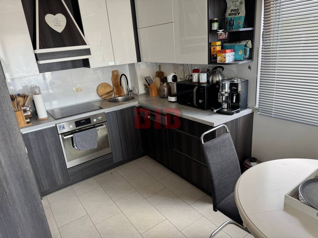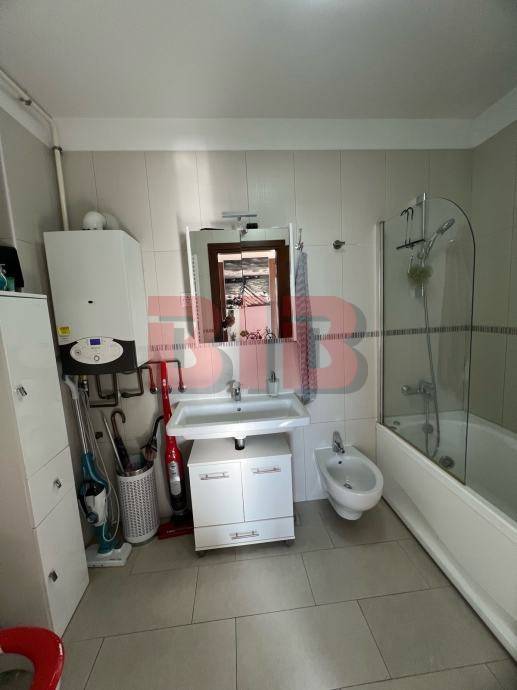 Stan se sastoji od 3 spavaće sobe,dnevnog boravka,kuhinje i blagovaone,hodnika,kupaonice,wc-a i balkona,ukupne korisne površine 83,70m2,te sporednog dijela spremišta površine 3,30m2(3,30x 0,5=1,65m2),a uz stan se prodaje i garaža površine 18,10m2( 18,10x0,5 9,05m2),sveukupne korisne površine 94,40m2.Kvalitetna gradnja i oprema,grijanje dizalicom topline,zgrada ima lift i ulaz je iz garaže,stan se prodaje namješten