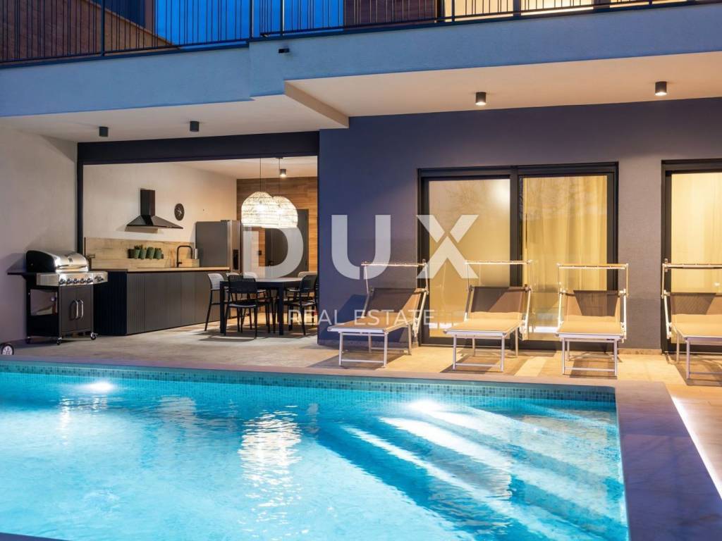 ISTRIA, BANJOLE - Modern semi-detached villa located by the sea! In the offer of DUX real estate we have the honor to present a modern semi-detached villa in an extraordinary location. The extraordinary location is exactly what sets this villa apart from others on the market, since it is very rare to find a villa just a few steps from the first beach, while having privacy and peace! VILLA DESCRIPTION: Conceptually, the villa extends over three floors and the layout of the rooms is as follows: On the ground floor we have two bedrooms, one of which has access to a covered terrace (14m2) by the pool, and there are two bathrooms. In addition to the above, the ground floor of the villa also offers a 41 m2 summer kitchen, which provides space for socializing with friends and family. There is also an additional guest toilet, a technical room, and a laundry room. The layout of the rooms in the project of this modern semi-detached villa is not classic, that is, when we reach the stairs to the first floor, we encounter an open space living room, kitchen and dining room with access to a sunny terrace. The same terrace is very spacious, and contains a jacuzzi as well as an unobstructed view of the sea. As part of the above, there is also an additional bathroom on the first floor of the villa. During the design of the villa, the emphasis for the majority of the stay was placed on the first floor, since the living area is located there, which distinguishes the villa from most others. The last floor of the villa hides two spacious bedrooms and two bathrooms as well as a terrace with a beautiful panoramic view of the sea! LOCATION DESCRIPTION: - the position of the villa separates you 100 meters from the first beach. - there is also a safe marina for boats nearby. - shops, restaurants, beach bars are located within a 3-minute drive by car. - close proximity to the Kamenjak Nature Park, ideal for all-day excursions. - the location of the villas offers its future owners maximum privacy and a beautiful green environment. TECHNICAL FEATURES OF THE VILLAS: - solar panels for water heating are provided. - underfloor heating installed throughout the villa. - 4 air conditioners in the bedrooms + additional air conditioner for the living room. - heated pool. - The villas are sold fully furnished. - remote-controlled electric fence. - connected to the city sewage infrastructure. The villa's courtyard provides a safe space for your tin pets, as well as the aforementioned heated pool with a thermal cover. The seller is a legal entity. For all other details and a tour of this beautiful semi-detached villa, please feel free to contact us at any time. Dear clients, the agency commission is charged in accordance with the General Terms and Conditions: www.dux-nekretnine.hr/opci-uvjeti-poslovanja ID CODE: 42691 Loren Kečan Agent s licencom Mob: +385 95 576 8337 Tel: +385 99 640 8438 E-mail: loren@dux-istra.com www.dux-istra.com Ivana Škoro Agent s licencom Mob: +385 95 388 1059 Tel: +385 99 640 8438 E-mail: ivana@dux-istra.com www.dux-istra.com