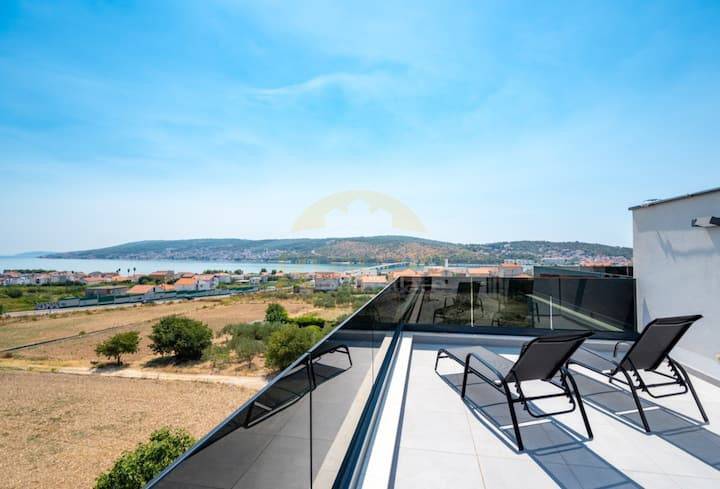 Long-term rental of a two-bedroom penthouse in Trogir in a quiet location in a new building.
