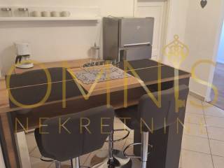 In offerta appartamento di 62 m2, situato al sesto piano, nel pieno centro di Fiume. L'appartamento è composto da due camere da letto, cucina con zona pranzo, ripostiglio, bagno, toilette e corridoio.