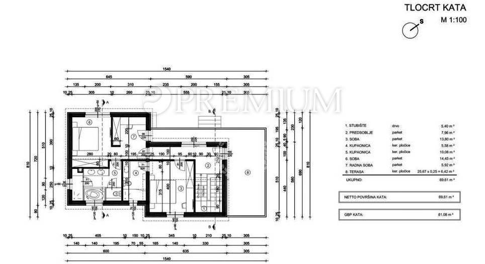 La casa è caratterizzata da una costruzione di prim'ordine. Durante la costruzione sono stati utilizzati solo materiali di altissima qualità. Una combinazione di infissi in PVC e ALU - Salamander, riscaldamento a pavimento in tutta la casa tramite sistema a pompa di calore, aria condizionata in tutte le stanze, mobili su misura - rovere massiccio, tecnologia di prima classe e videosorveglianza...