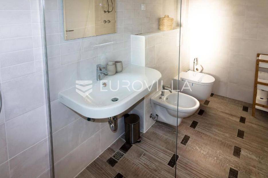 U mirnim Lokvičićima kod Imotskog, prodaje se moderna kuća za odmor s vanjskim bazenom i terasom za druženje.Kuća ima 91 m2, a smještena je na parceli od ukupno 535 m2.Unutarnji prostor podijeljen je na dvije etaže. Prizemlje je podjeljeno na se kuhinju, blagovaonicu, dnevni boravak i kupaonicu, dok su na katu spavaće sobe s pripadajućim kupaonicama , te prostran balkon po cijeloj dužini kuće.Prizemlje ima izlaz na dio ograđenog dvorišta s prekrasnom natkrivenom terasom za druženje, bazenom i sunčalištem. U nastavku uređenog vrta nalazi se moderan kamin s natkrivenim dijelom za zaštitu od kiše i jakog sunca.Pored bazena nalazi se vrtna kućica koja sada služi za spremanje stvari sa sunčališta i kao pomoćna kuhinja za natkrivenu terasu s blagovaonskim stolom. Uz kuću se nalazi opremljen privatni fitness prostor, a ispod njega je dodatna skladišna prostorija u podrumu. Pored toga se nalazi nastrešnica za tri parkirna mjesta, dok je nenatkrivenih vanjskih mjesta oko kuće još nekoliko.Ova nekretnina idealna je za odmor u netaknutoj prirodi Dalmatinske zagore ili kao atraktivna investicija.Za sve dodatne informacije, stojim Vam na raspolaganju.