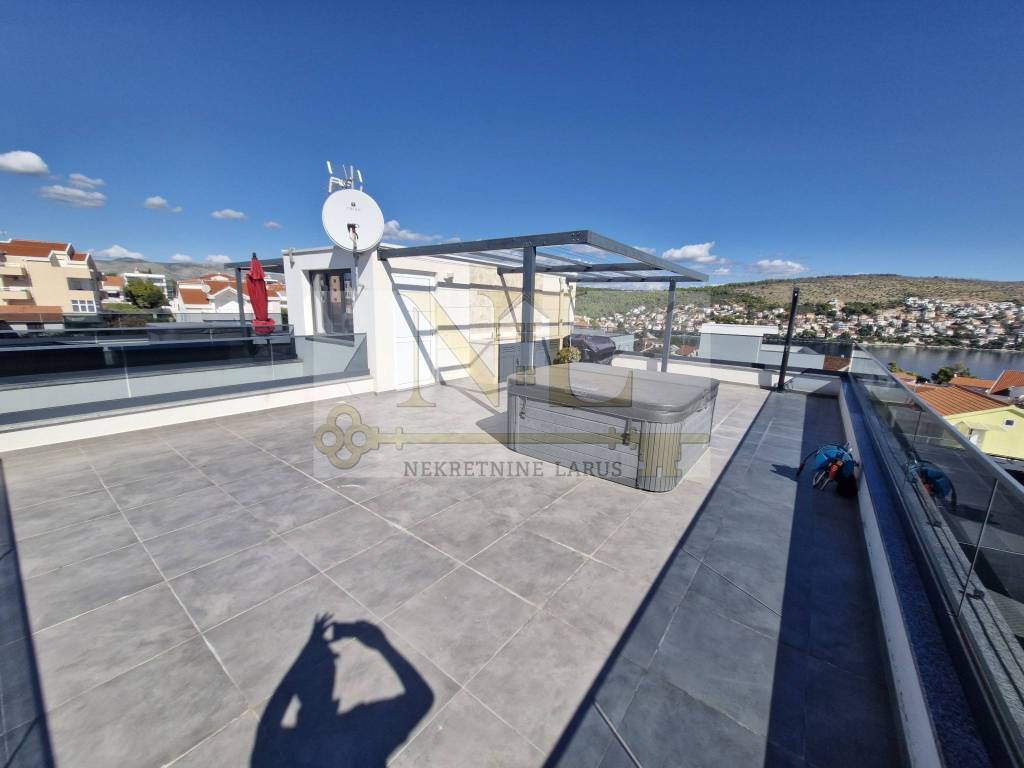 We are selling a penthouse apartment with a roof terrace S6 on the second floor of a new building in Okrug Gornji, in a prime location 200 meters from the sea and the beach.