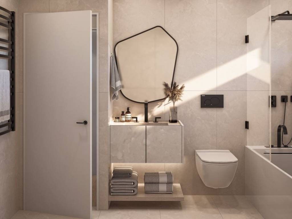 A three bedroom apartment with a spacious terrace in Okrug Donji in the second row to the sea that combines luxury and comfort into one spreads over 93,55 m² of internal area, while an impressive 36,14 m² of external space gives it additional value. Located in a prime location, the apartment offers access to a landscaped sunbathing area by the sea and views that open in all directions – to the north, east and west. The apartment is located on the ground floor, and the building is equipped with an elevator. The apartment consists of three bedrooms, a bathroom, a hallway and a living area with access to a terrace with a sea view. The apartment is located in a smaller residential building with a total of seven units. The owners also have access to the common areas in this building: a roof terrace with lounge seats and a sea view, a fitness area and saunas in the basement and a swimming pool. The apartment comes with one garage parking space in the basement of the building, and there is a possibility of purchasing an additional garage parking space. The construction is carried out with an emphasis on quality: tiles and sanitary ware of the highest standard, air conditioner in every room, security doors and the possibility of final decoration in cooperation with experienced interior designers. The location is one of the biggest advantages – the sea is just a few steps away, and Trogir and Split are nearby, while the airport is only 13 km away. The clear sea, Mediterranean landscape and the availability of all amenities make this apartment an ideal solution for a year round stay or a luxurious vacation.