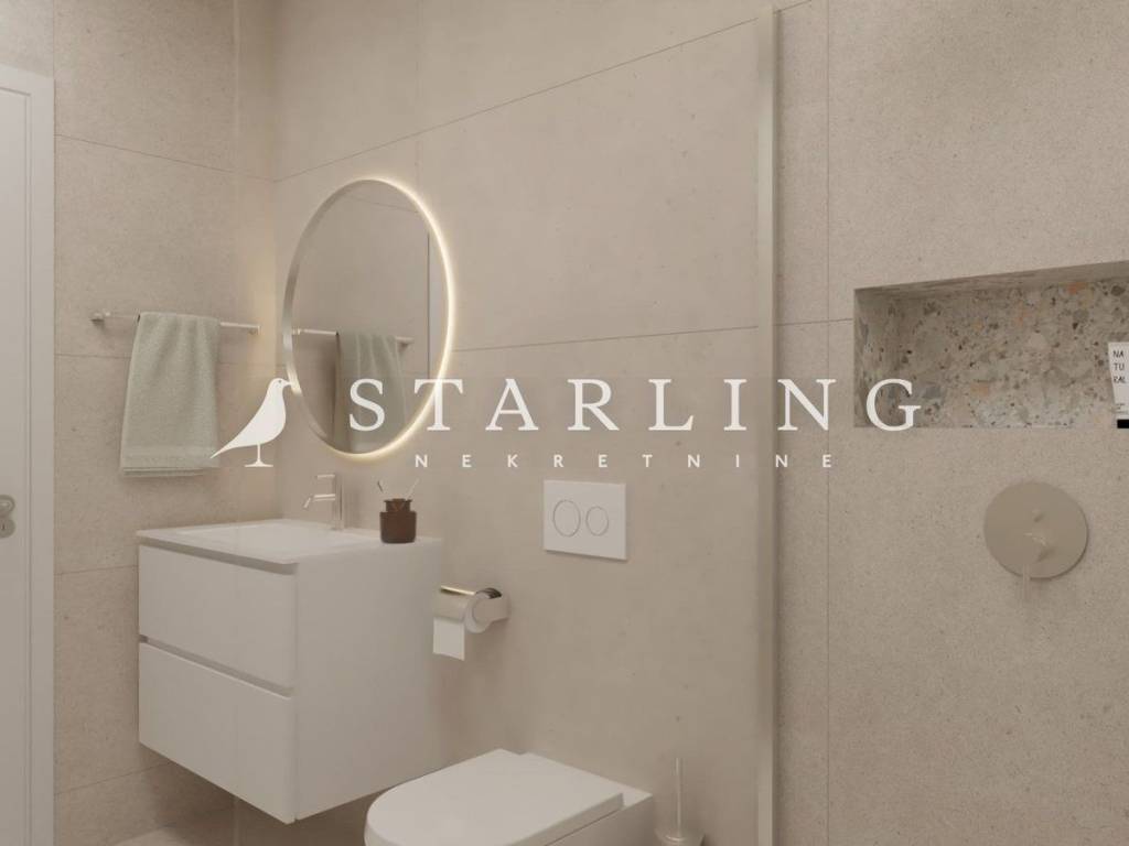 The apartment is equipped with high-quality PVC joinery with triple-layer Saint-Gobain 4S glass, air conditioning units in all rooms, water-based underfloor heating throughout the entire apartment for added comfort during the winter months, electric shutters, lacquered interior doors, and security entrance doors. The entrance door to the building is made of high-quality aluminum, and special attention has been given to thermal insulation both on the facade and the flat roof, ensuring energy efficiency and year-round comfort.