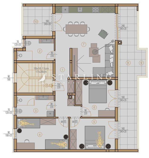 The apartment has been carefully designed to provide maximum comfort and functionality. It consists of a spacious open-plan living room connected to the kitchen and dining area, three bedrooms, and two bathrooms. A special feature is the two terraces – the living room has direct access to both, while the bedrooms open onto one of the terraces, bringing abundant natural light, ventilation, and added practicality to the space.