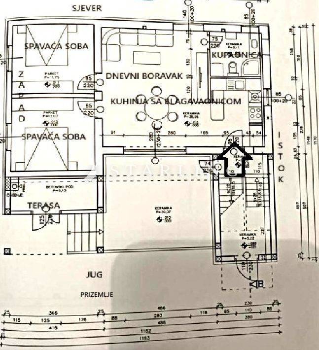 Prodaje se kuća tlocrtne površine 181 m2 na parceli od 489 m2.