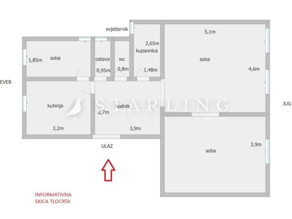 Prostor se sastoji od: tri uredske prostorije, prostranog ulaznog hodnika, kuhinje, kupaonice, WC-a i ostave.