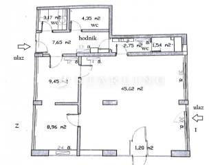 Prostor se sastoji od tri prostorije, pretprostora, tri kupaonice i dva hodnika.