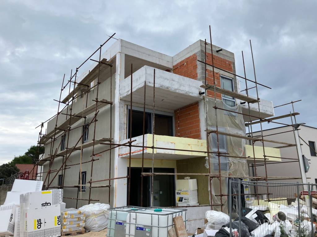 Ova moderna zgrada s 4 apartmana s dvije je strane okružena cestom širine 5 metara, a svakom stanu pripadaju i dva parkirna mjesta ispred zgrade.