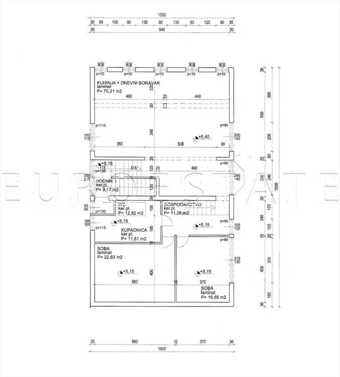 PROSTORIJE STANA: stubište, wc, ulazni hodnik, kuhinja sa blagovaonicom i dnevnim boravkom, predsoblje, kupaonica sa wc-om, dvije spavaće sobe
