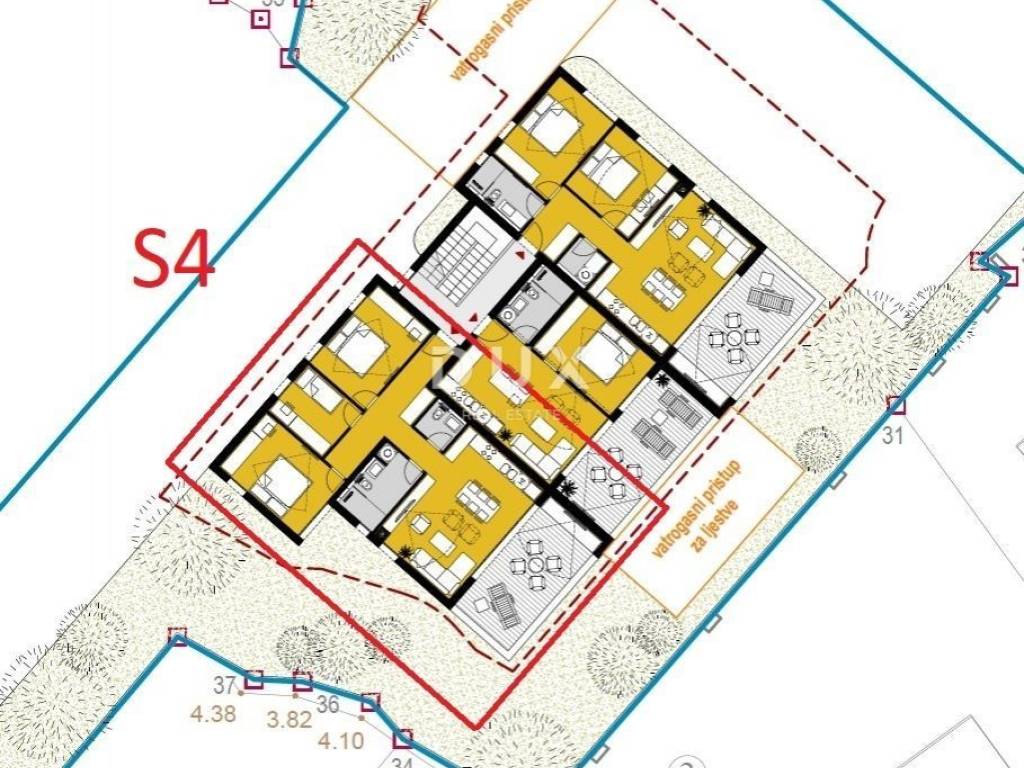 ŠIBENIK, SRIMA – Luxury apartment in a new building just 300 m from the sea and the beach DUX is a modern new building located in an excellent microlocation in Srima, just 300 meters from the sea and beautiful beaches. Srima is a quiet and well-maintained settlement near Vodice, ideal for family life and vacation, and at the same time close enough to all necessary amenities and city life. Apartment S4 (building B) is located on the first floor of a building with 9 apartments and is oriented to the southwest, which ensures plenty of natural light and a pleasant atmosphere throughout the day. It covers a net usable area of 95.00 m², while the total area with associated amenities is 121.00 m². The apartment consists of: entrance hall: 11.59 m² bathroom: 5.98 m² three bedrooms: 12.54 m², 7.38 m² and 12.69 m² WC: 2.17 m² open-concept kitchen, dining room and living room: 24.40 m² covered terrace: 17.25 m² Special attention has been paid to the quality of construction and the materials used. The building and the apartment were built according to the highest standards of modern construction, by a renowned contractor with many years of experience, whose previous projects can be personally inspected to verify the quality of the execution. Equipment and features: Distance from the sea and beach: 300 m Underfloor heating in all rooms Air conditioning in each room PVC joinery with triple glazing and electric shutters Quality thermal insulation of the facade (min. 10 cm) High-quality materials and finishing Sanitary and ceramics from well-known manufacturers Reputed contractor with proven references This modern new building in Srima represents an ideal opportunity for those looking for a comfortable home near the sea or a safe investment in a quality property on the Adriatic coast. For all other information and viewing of this interesting property, please feel free to contact us. Srima is a quiet and pleasant village located just a few kilometers from Vodice. The village is known for its family houses and villas that make it an ideal place for vacation, but also for year-round living. Along the coast, picturesque sandy and rocky beaches stretch, and from almost every point there is a view of the charming coast and crystal clear sea. The distance to the Krka National Park is about 16 kilometers, while the airports of Split and Zadar are 50 and 85 kilometers away, respectively. Dear clients, the agency commission is charged in accordance with the General Terms and Conditions: www.dux-nekretnine.hr/opci-uvjeti-poslovanja ID CODE: 42888 Dux Zadar Mob: +385 91 312 1121 Tel: +385 91 480 8808 E-mail: info@dux-nekretnine.hr www.dux-dalmacija.com