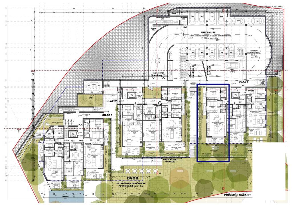 Split - Podstrana, TERASE - EKSKLUZIVAN PROJEKT, NOVOGRADNJA, luksuzna stambeno-poslovna zgrada s ukupno 57 stambenih jedinica na atraktivnoj lokaciji, bit će građena po najvećim standardima, na način da prati moderan i suvremen način života. Useljenje je predviđeno u prvoj polovici 2028. godine.STAN S3 - dvosoban stan na prvom katu zatvorene površine 79,13 m2, s dvije natkrivene terase 12, 69 m2 i 7, 13 m2 , te vrtom površine 55,95 m2.U cijenu stana su uključena dva garažna parkirna mjesta ukupne površine 30 m2 i spremište površine 4 m2. Ukupno obračunski 110, 34 m2.Stan se sastoji se od ulaznog prostora, dnevnog boravka s blagovaonicom i kuhinjom otvorenog tlocrta s izlazom na terasu, dvije spavaće sobe i dvije kupaonice.Vrhunska oprema: dizalica topline, podno grijanje, klimatizirana svaka prostorija, ALU stolarija, protuprovalna ulazna vrata, parket I. klase, vrhunska keramika i sanitarna oprema...Nalazi se na atraktivnoj mikrolokaciji , u drugom redu od mora , odmah iznad hotela Le Méridien Lav, te u neposrednoj blizini svih potrebnih sadržaja ( uređena plaža, restorani, beach bar , teniski tereni, Wellness centar, ... ).Za sve ostale informacije stojimo Vam na raspolaganju.
