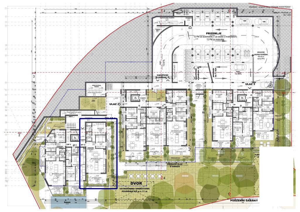 Split - Podstrana, TERASE - EKSKLUZIVAN PROJEKT, NOVOGRADNJA, luksuzna stambeno-poslovna zgrada s ukupno 57 stambenih jedinica na atraktivnoj lokaciji, bit će građena po najvećim standardima, na način da prati moderan i suvremen način života. Useljenje je predviđeno u prvoj polovici 2028. godine.APARTMAN 1 - dvosoban apartman u prizemlju zatvorene površine 79, 61 m2, s dvije natkrivene terase površine 15, 07 i 8, 81 m2, te vrtom površine 21, 94 m2.U cijenu stana su uključena dva garažna parkirna mjesta ukupne površine 30 m2 i spremište površine 4 m2. Ukupno obračunski 111, 4 m2.Stan se sastoji se od ulaznog hodnika, prostranog dnevnog boravka s blagovaonicom i kuhinjom otvorenog tlocrta s izlazom na terasu, dvije spavaće sobe s izlazom na terasu, te dvije kupaonice.Vrhunska oprema: dizalica topline, podno grijanje, klimatizirana svaka prostorija, ALU stolarija, protuprovalna ulazna vrata, parket I. klase, vrhunska keramika i sanitarna oprema...Nalazi se na atraktivnoj mikrolokaciji , u drugom redu od mora , odmah iznad hotela Le Méridien Lav, te u neposrednoj blizini svih potrebnih sadržaja ( uređena plaža, restorani, beach bar , teniski tereni, Wellness centar, ... ).Za sve ostale informacije stojimo Vam na raspolaganju.