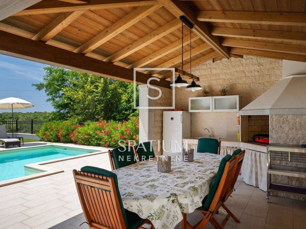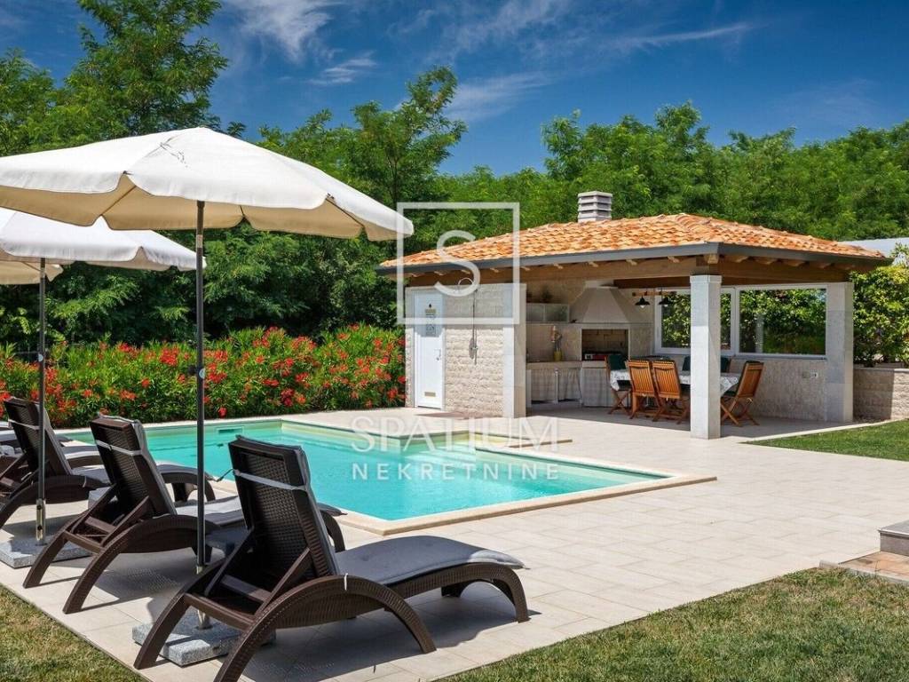 BUJE, proponiamo casa indipendente su due piani con piscina. Si trova in una zona tranquilla, immersa nella natura. Superficie abitabile di 186 mq suddivisa in due piani collegati da scala interna. Piano terra: spazio per socializzare, spaziosa camera da letto, bagno, disimpegno, cucina moderna, sala da pranzo, soggiorno con ampie superfici vetrate e vista sulla piscina e sul verde, e uscita sul cortile coperto, terrazzato e piscina. Piano: tre camere da letto con bagno privato, bella vista e accesso al terrazzo. Il cortile recintato è completamente arredato in stile mediterraneo, ben curato, contiene una piscina di 26 mq, solarium, cucina estiva coperta in pietra con barbecue e zona socializzazione, locale con attrezzatura per piscina, giardini con irrigazione automatica, posti auto coperti , il tutto protetto dalla vista e consente una completa privacy. Costruzione e attrezzature di alta qualità tra cui ventilconvettori, filtri per l'acqua, sistema di allarme, completamente arredato e pronto all'uso. Immobile degno di attenzione!! Adatto per vita comoda, vacanza, ottimo investimento turistico.