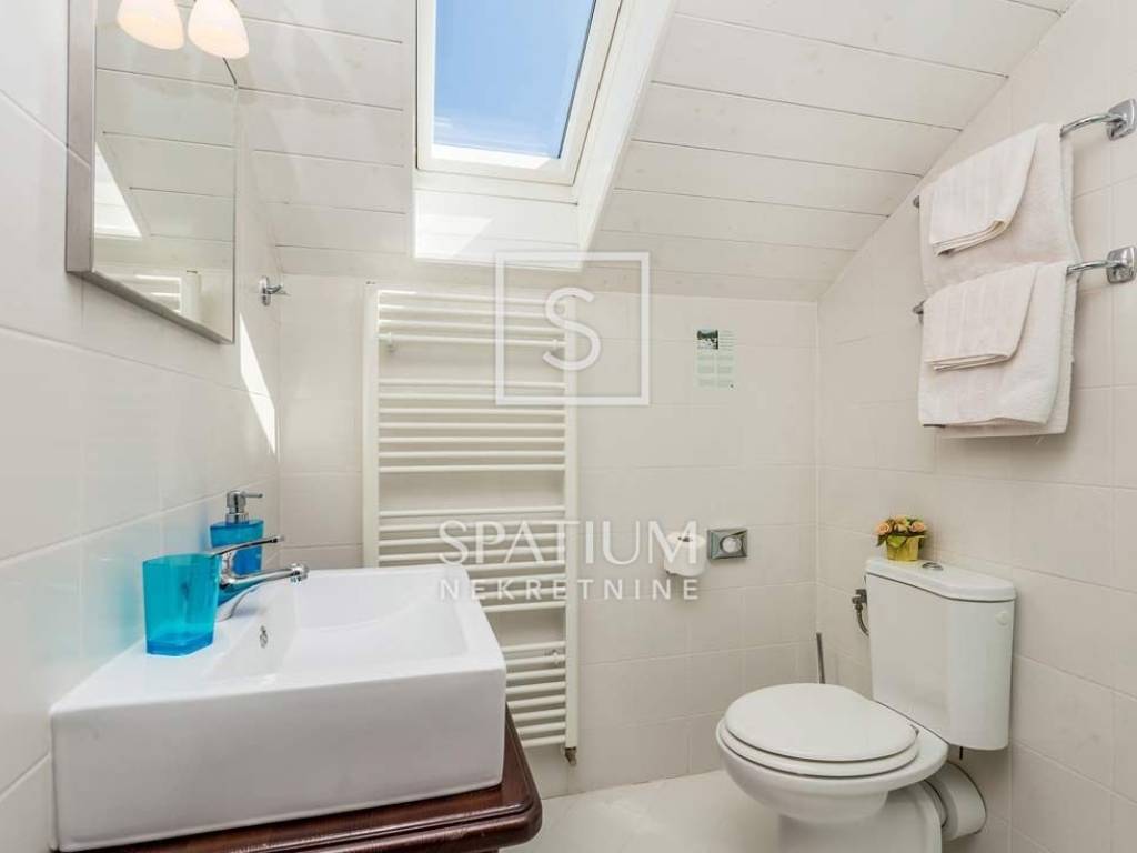 MRKOPALJ, SUNGER, nell'offerta abbiamo ricevuto una bella casa in legno con un ampio giardino annesso, che funziona come un boutique hotel. Una casa in legno costruita vicino al paese, ma fuori da esso, con una superficie abitabile totale di 400 mq, è composta da un piano terra e un piano. Il piano terra è composto da un ampio open space di circa 90 mq in cui si trovano un soggiorno, una sala da pranzo, una biblioteca, un angolo ufficio e un grande camino. Allo stesso modo, al piano terra si trovano una camera da letto con annesso bagno, una cucina, un piccolo studio, un ripostiglio, un disimpegno, due bagni per gli ospiti, un locale caldaia e un terrazzo coperto con vasca idromassaggio. Al primo piano ci sono 6 camere da letto, di cui due più grandi (25 mq e 22 mq) e quattro più piccole (18 mq), ciascuna con il proprio bagno, sauna a infrarossi e ripostiglio. Va notato che in tutta la casa prevalgono mobili in legno fatti a mano. Si sviluppa su un terreno edificabile paesaggistico di 2.000 m2 con prato, giardino e campi di lavanda che circondano la casa. Il riscaldamento, oltre al camino a legna, è garantito da un impianto centralizzato a pellet. Sono stati installati anche pannelli solari con una potenza di 12,74 kW. Questa proprietà attualmente opera attivamente e con successo e l'attività può essere rilevata e continuata. La posizione unica e i suoi dintorni garantiscono occupazione durante tutto l'anno. Se volete fuggire dal caos e dalla frenesia della vita quotidiana e rilassarvi all'aria fresca e nella natura incontaminata della regione di Goran, Mrkopalj è la destinazione giusta per voi. Qui potrete trascorrere le vostre vacanze invernali, con lo scricchiolio della neve sotto i piedi, in un ricciolo, slittando e sciando in un ambiente amichevole. La regione di Mrkopal è la destinazione giusta, con la sua natura incontaminata consente una vacanza attiva e salutare sia in estate che in inverno - unica e irripetibile. Abbazia si trova a 44 km dalla struttura, mentre Fiume è a 33 km. L'aeroporto più vicino è quello di Rijeka, che dista 26 km. Per altre informazioni non esitate a contattarci. Robert Žauhar Assistente alla mediazione +385 92 177 5404 robert@spatium.hr Spatium nekretnine +385 51 272 903 info@spatium.hr