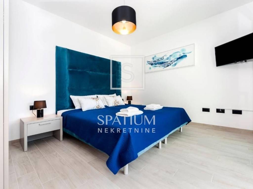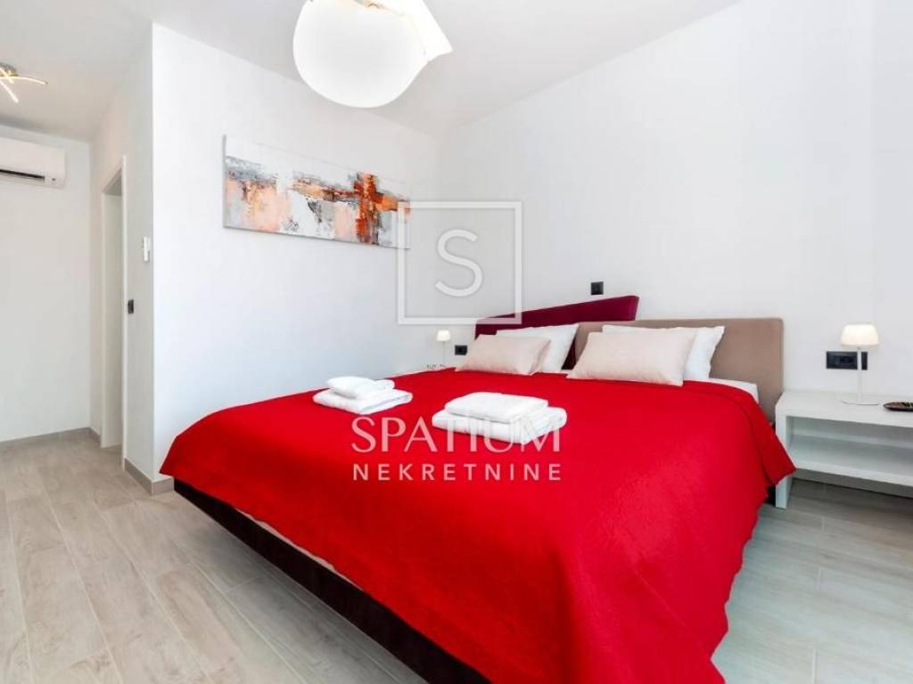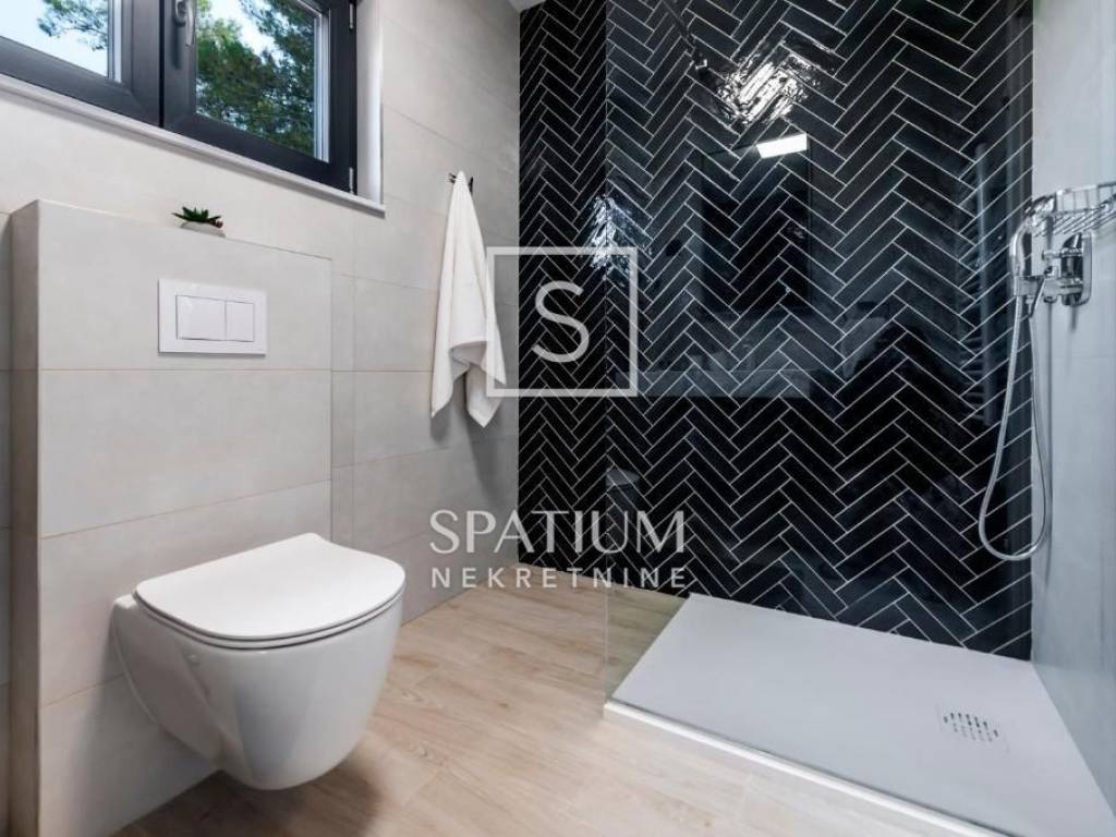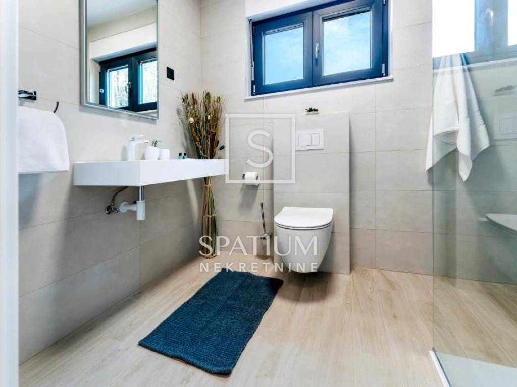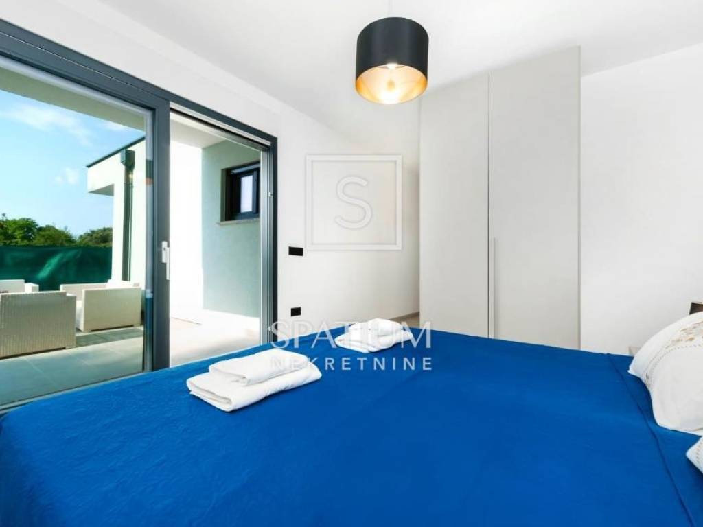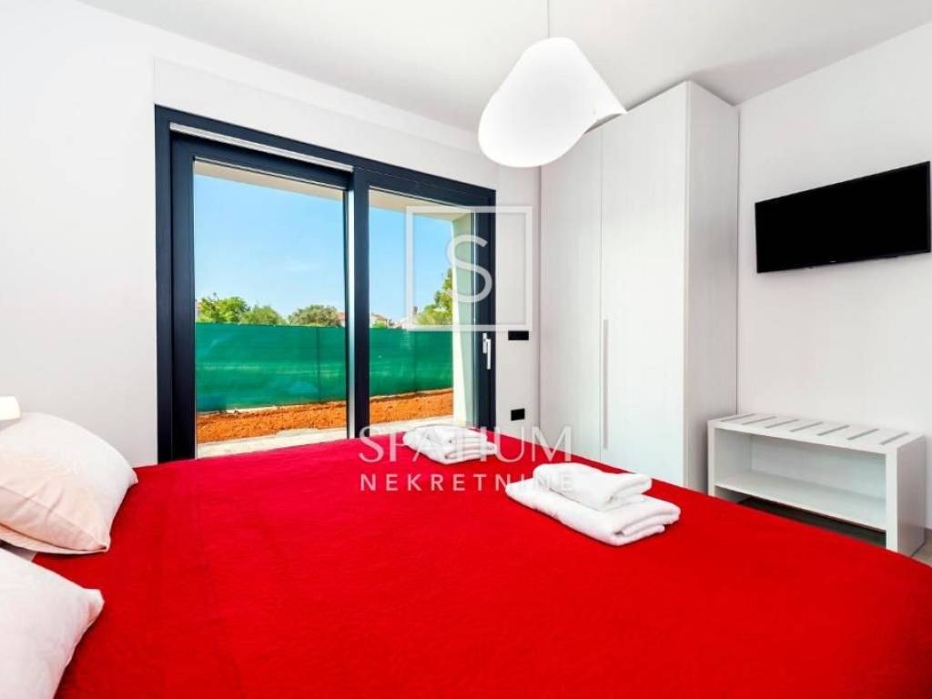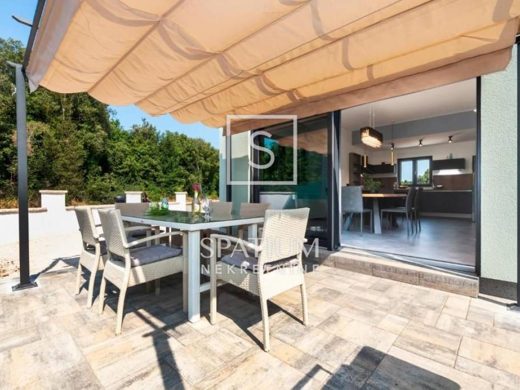 ROVIGNO, offriamo una moderna villa prefabbricata, una casa ad un piano di 139 m2 con piscina, situata in una posizione bella e tranquilla. L'immobile, lussuosamente arredato, è composto da una cucina con sala da pranzo e soggiorno, due camere da letto, tre bagni ed un disimpegno. C'è anche una piscina di 24 mq con solarium, terrazza e barbecue nel giardino completamente recintato di 552 mq. La palazzina è situata in una zona tranquilla fuori dal caos cittadino, immersa in una pineta, a 700 metri dalla spiaggia e a 2,5 km dal centro cittadino. Grazie alla sua micro posizione, si tratta di un'eccellente opportunità e investimento per impegnarsi in attività turistiche e per una vita familiare tranquilla.