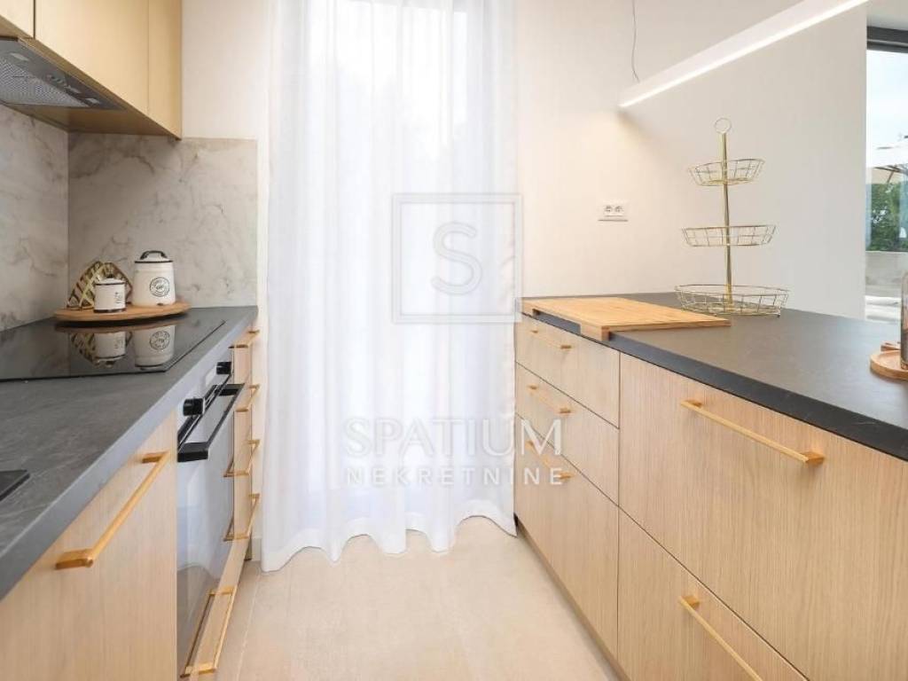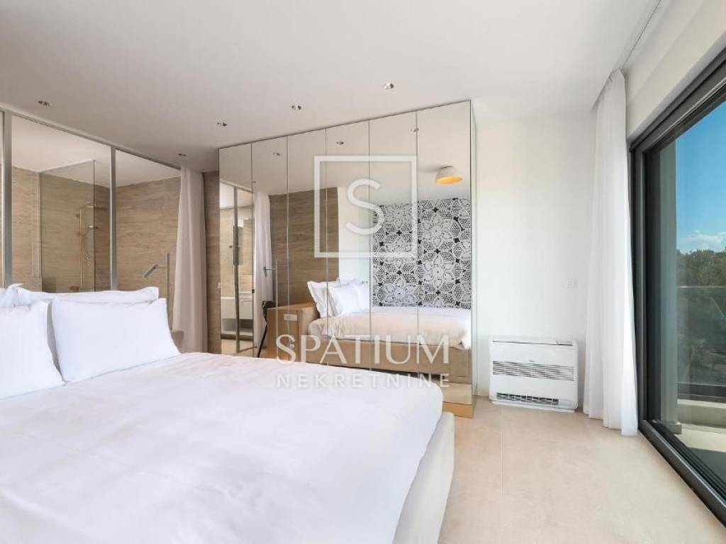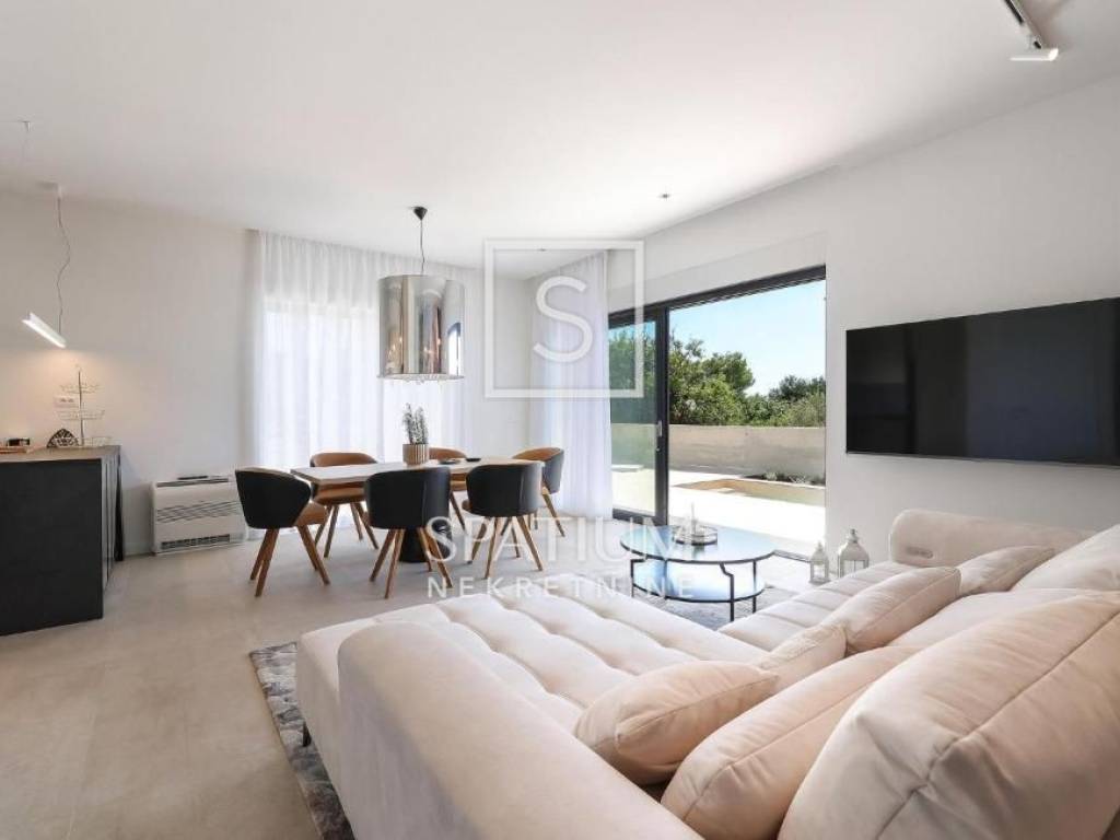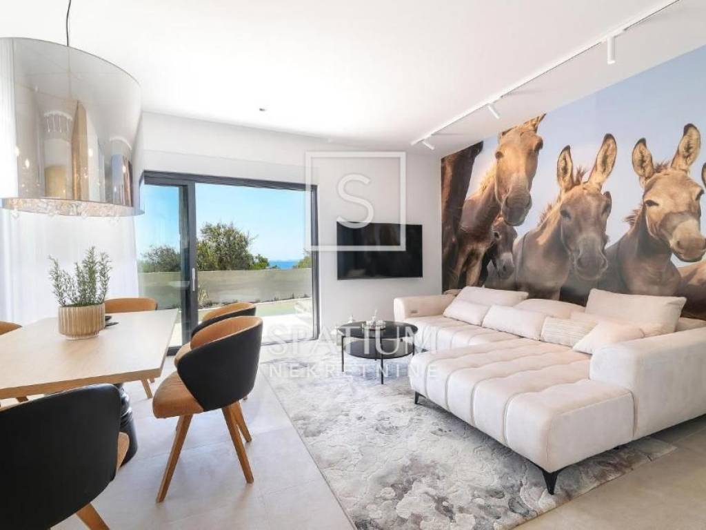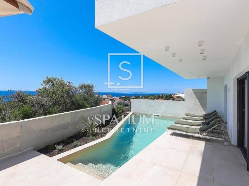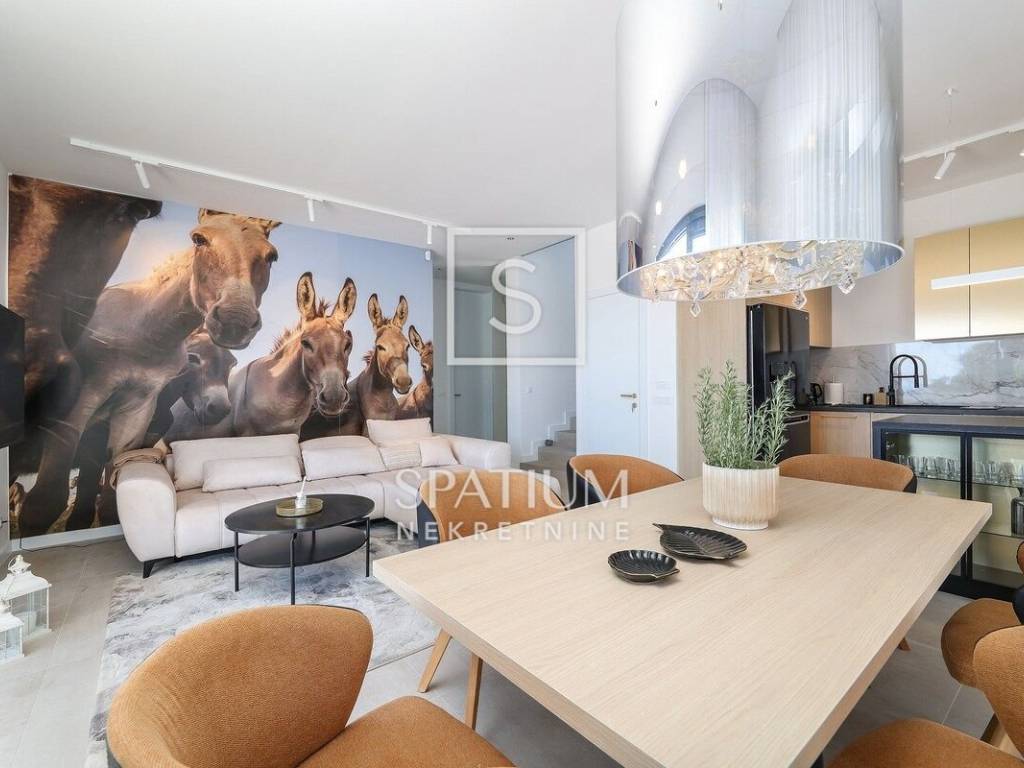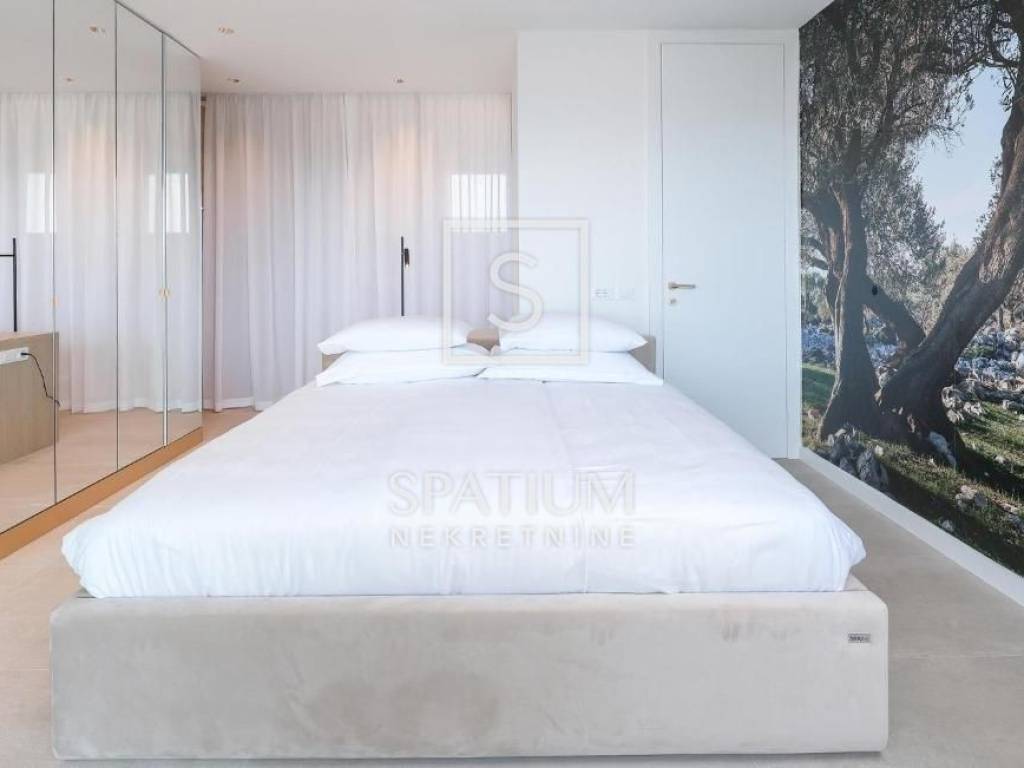 PAG, abbiamo ricevuto un'offerta per una casa bifamiliare moderna di 146 m2 con una bellissima vista panoramica. L'immobile si sviluppa su due piani. Il piano terra offre un soggiorno open space con zona pranzo e cucina completamente attrezzata, nonché un bagno per gli ospiti. Una terrazza coperta e un'ampia zona prendisole sono collegate alla piscina. Al primo piano ci sono due camere da letto con bagno privato e terrazza. È progettato secondo standard moderni ed è lussuosamente equipaggiato. La villa si trova all'interno della zona pedonale, a soli 200 metri dal mare e dalla spiaggia. Grazie alla sua microlocalizzazione e alla consolidata industria turistica, è il luogo ideale per investire in ulteriori attività commerciali, ma anche per il divertimento delle famiglie. - Attrezzature, serramenti in alluminio Shucco a tre strati, condizionatori Toshiba in tutte le stanze, riscaldamento a pavimento, ceramiche e parquet di prima qualità, lampadari Moooi, illuminazione Intralight e sistema di sicurezza con telecamere. - Piscina riscaldata a sfioro, terrazza solarium, area barbecue e parcheggio privato e custodito per tre auto.