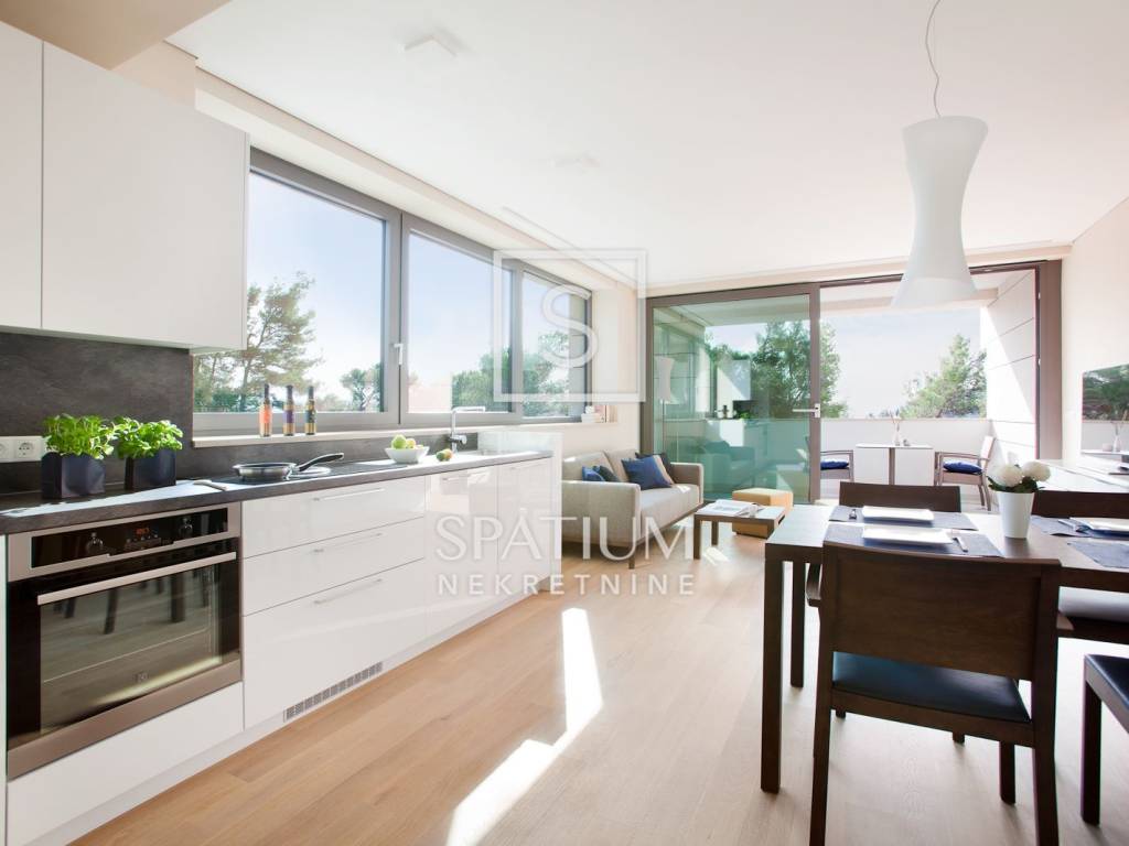 Gli appartamenti si trovano al secondo e terzo piano di un edificio di lusso sulla collina, con una disposizione identica che comprende soggiorno con zona pranzo e cucina completamente attrezzata, una spaziosa camera da letto, bagno con doccia e un WC aggiuntivo. Gli interni sono climatizzati e dotati di riscaldamento a pavimento e a soffitto, moderni e luminosi, con ampie porte finestra che conducono direttamente allo spazio esterno.